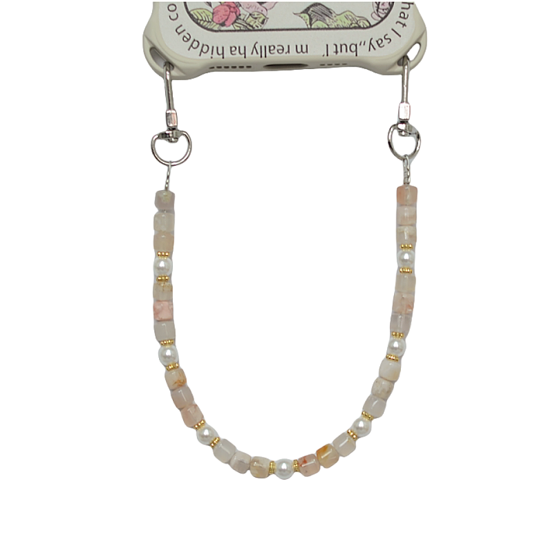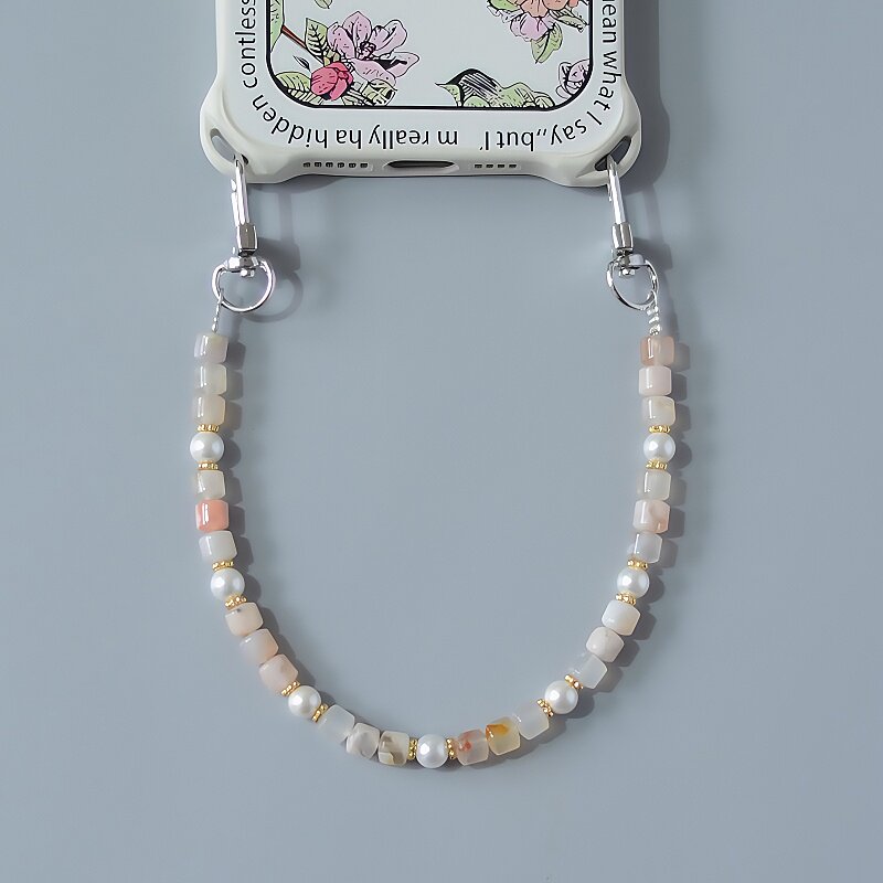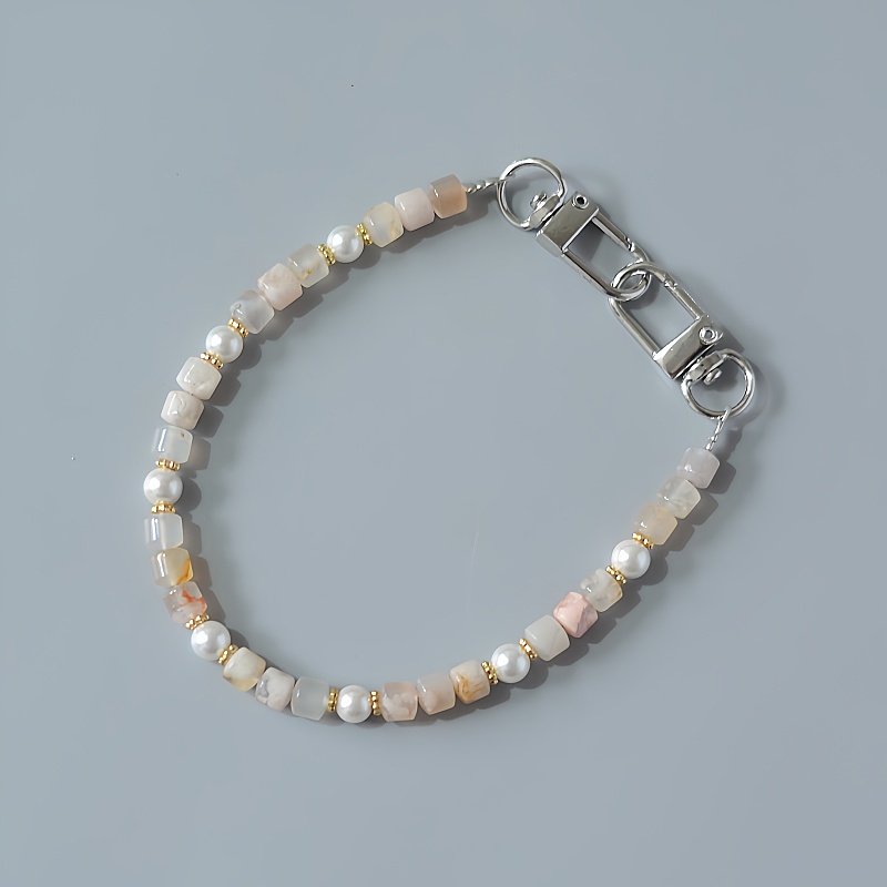 双扣头樱花玛瑙珍珠贝壳女简约百搭短款 防丢挂手腕手机链挂绳挂饰