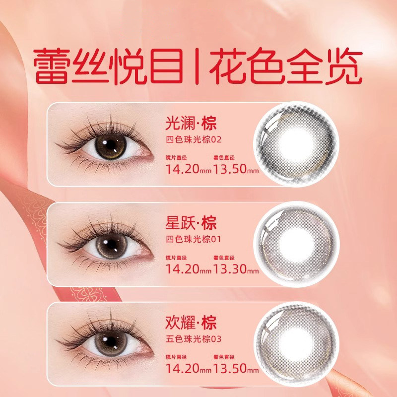 博士伦光澜棕美瞳设计师款 日抛10片四色珠光蕾丝悦目幻彩隐形眼镜