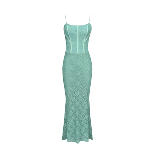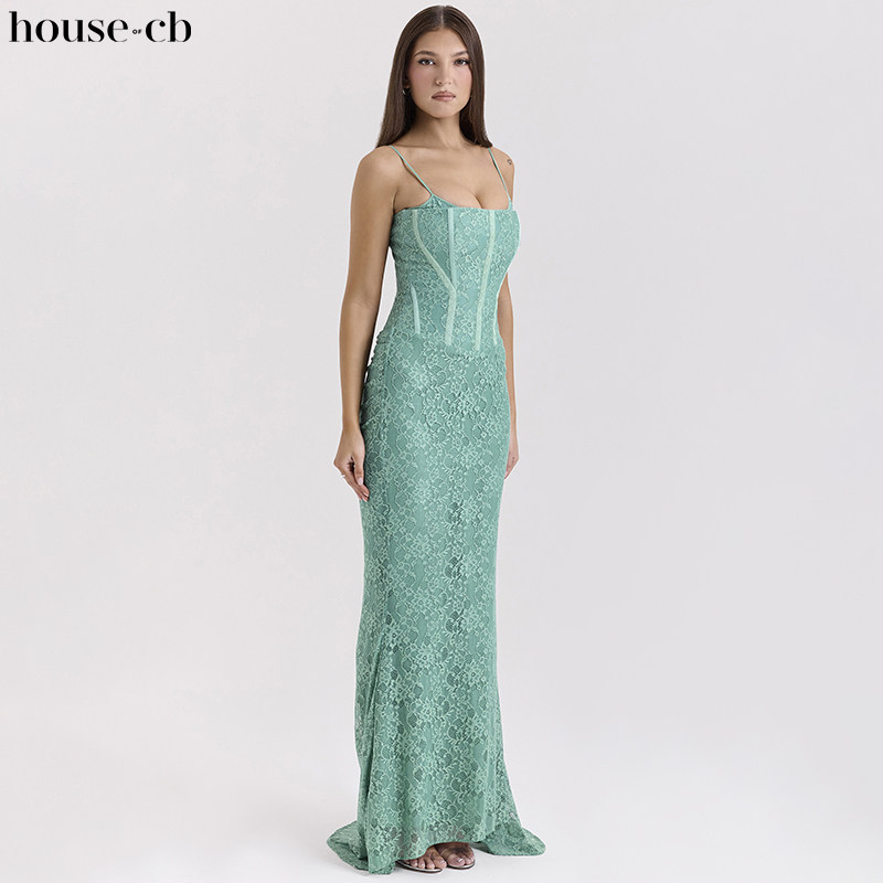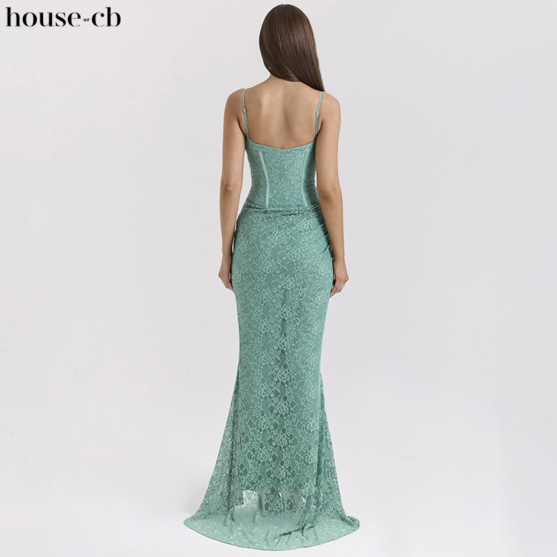 House CB优雅高贵翡翠绿蕾丝紧身超长连衣裙Antonina