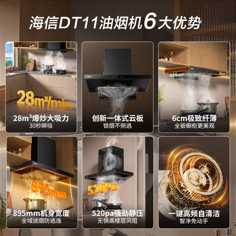 海信欧式 DT11 顶吸抽油烟机28立方大吸力挥手云魔方系列烟机套装
