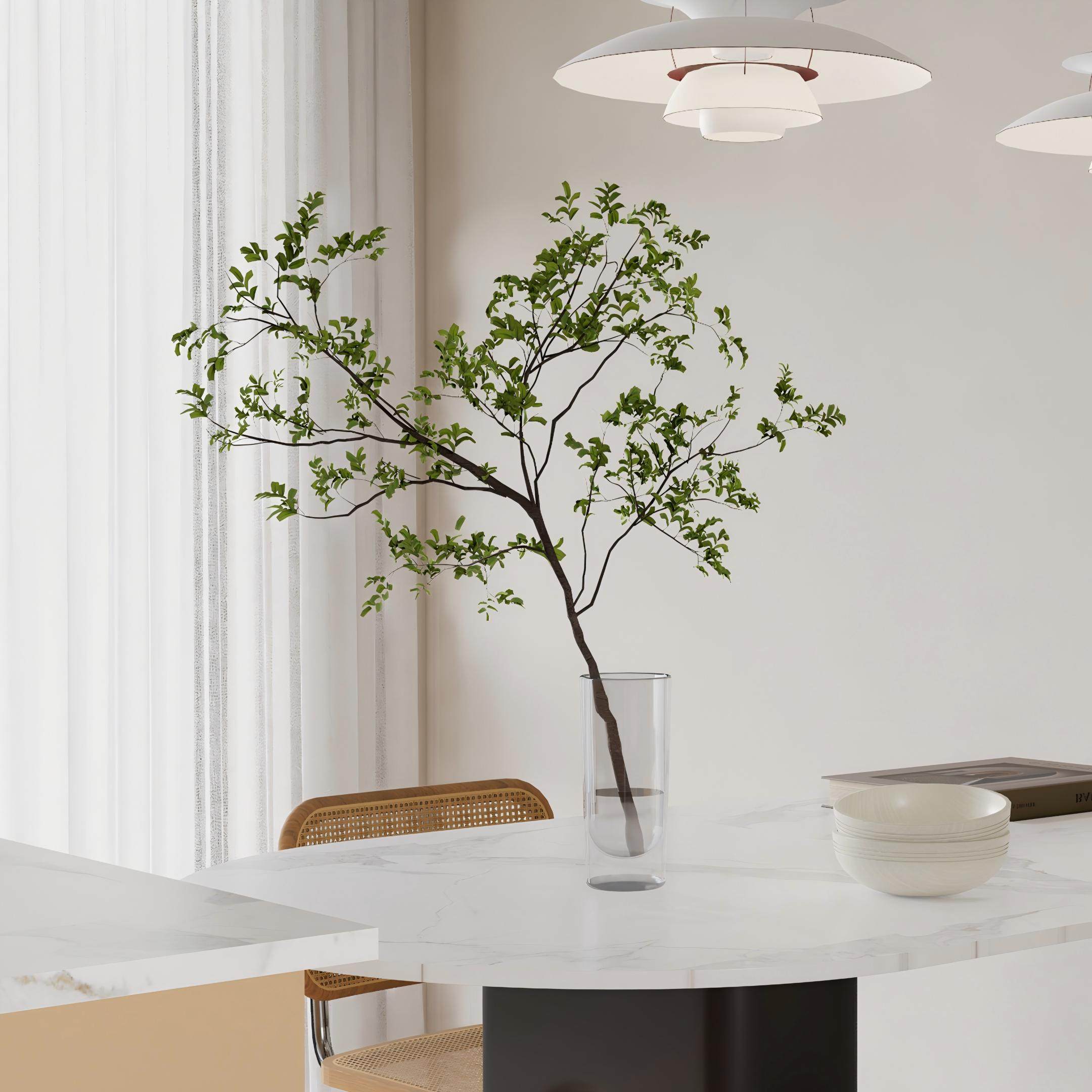 仿真梅花桃花枝摆件客厅干花盆景腊梅摆设花盆栽客厅室内装 饰假花