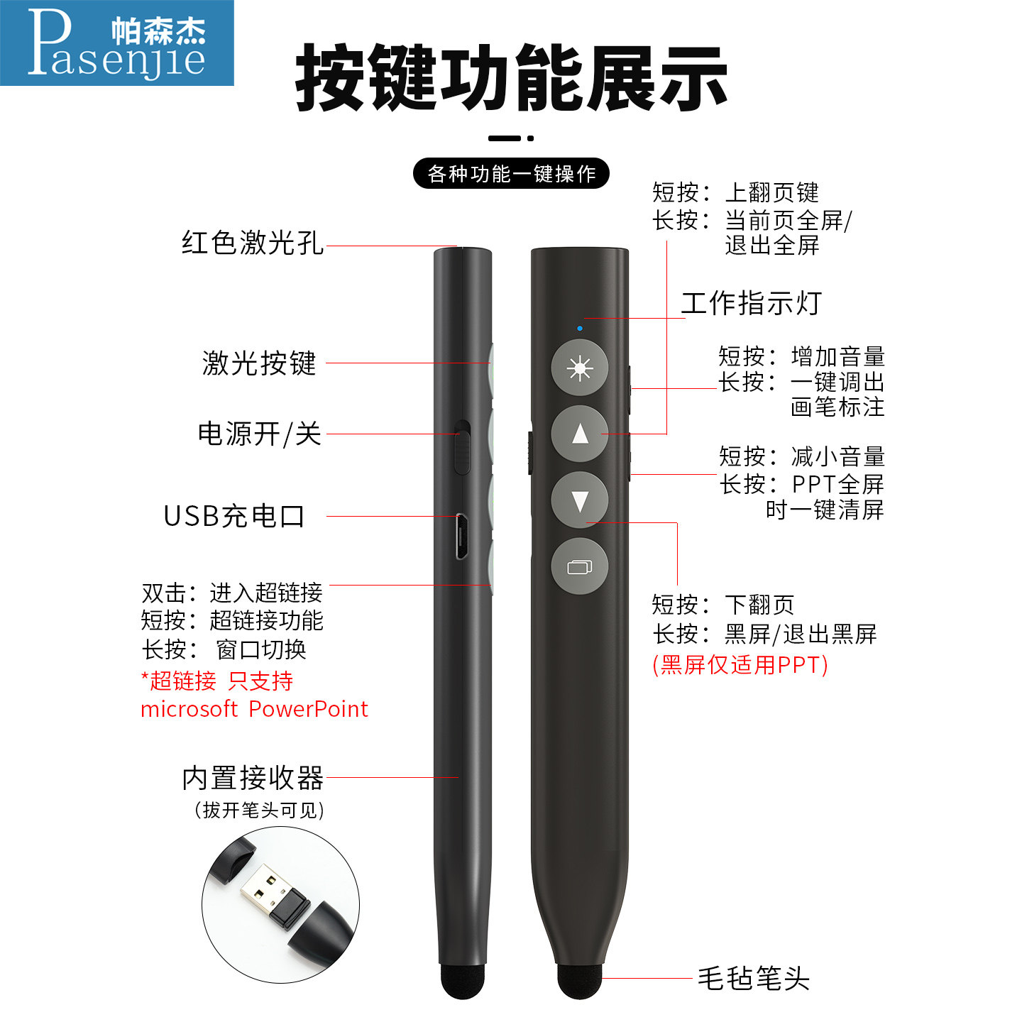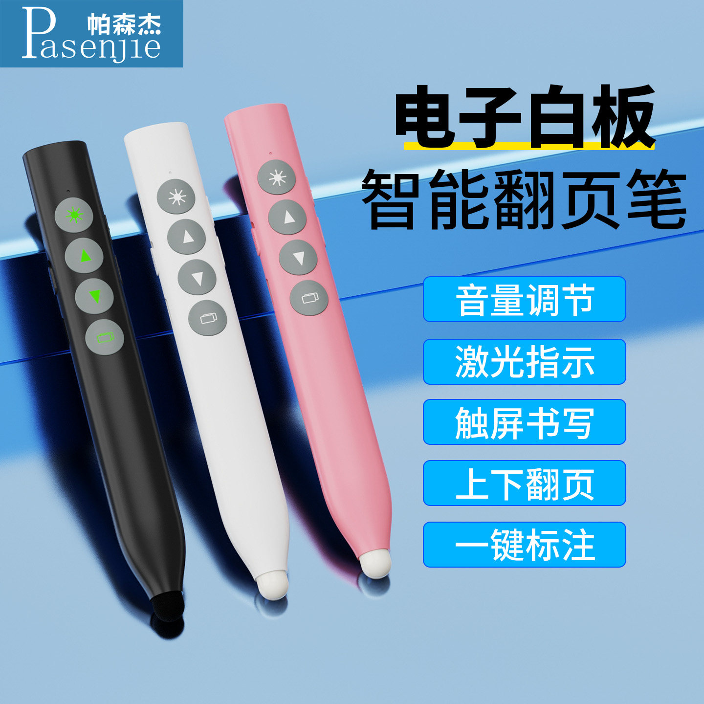 帕森杰 PPT翻页笔教师用多功能适用希沃多媒体一体机电脑课件可伸缩上课空中鼠标电子白板智能激光触屏遥控笔