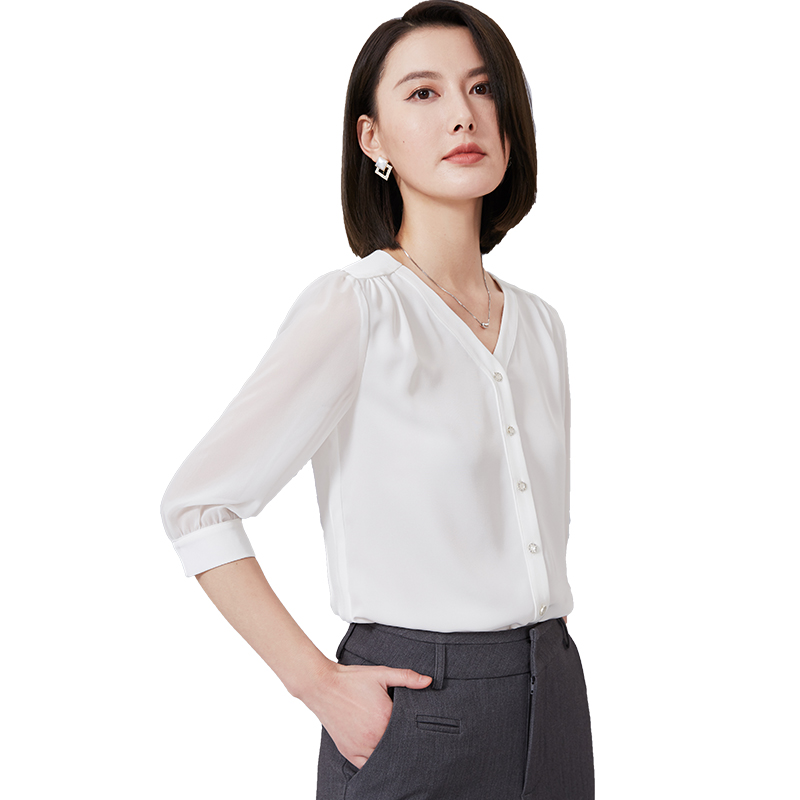 设计感韩版 白色绸缎长袖 女高级感2025新款 宽松衬衣 衬衫 NEVA