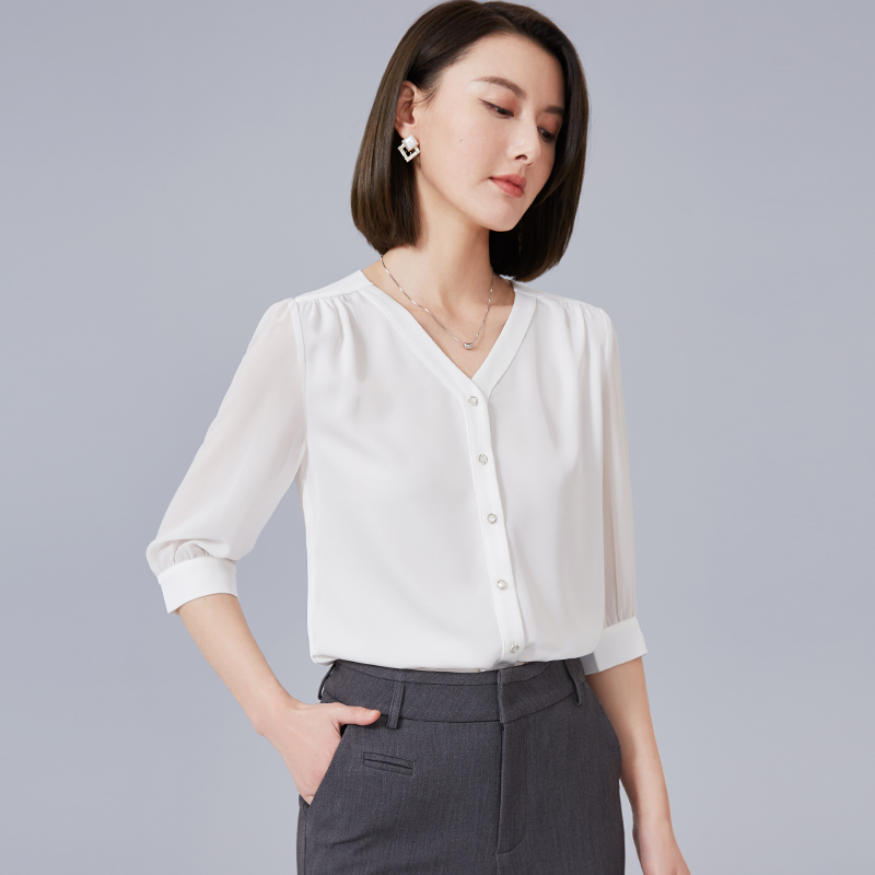 韩版 NEVA 女设计感2025新款 衬衫 复古港味休闲百搭上衣 HU白色长袖