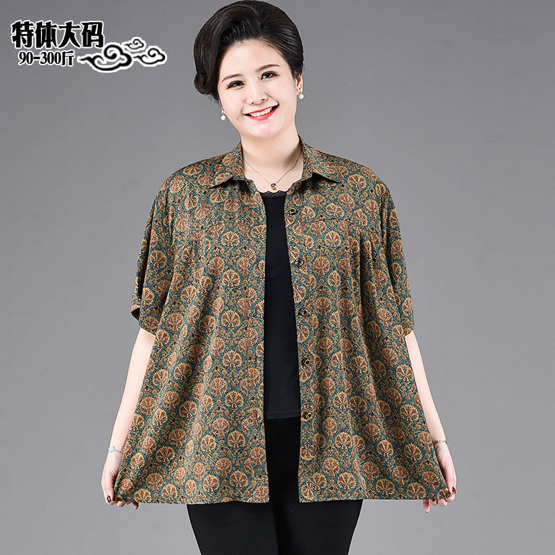 女装 衬衫 200斤加肥加大码 胖太太妈妈装 中老年人夏装 上衣开衫 中袖