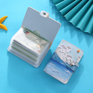 油画风卡通卡包女超薄多卡位大容量防消磁卡片包名片夹一体零钱包