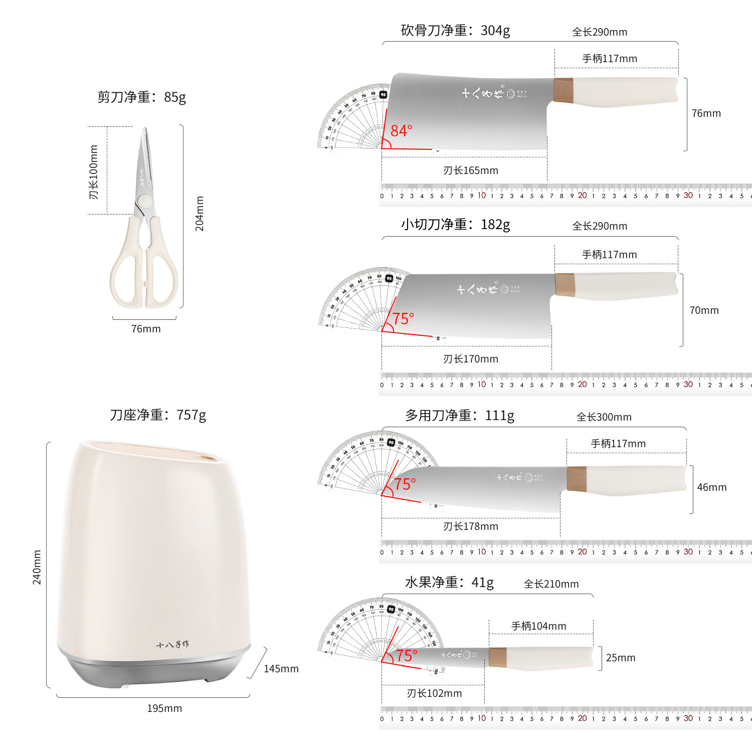 十八子作刀具套装 家用全套厨房菜刀切菜斩骨头水果刀不锈钢组合