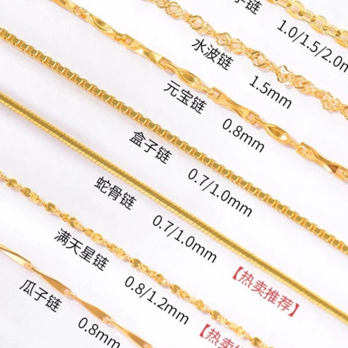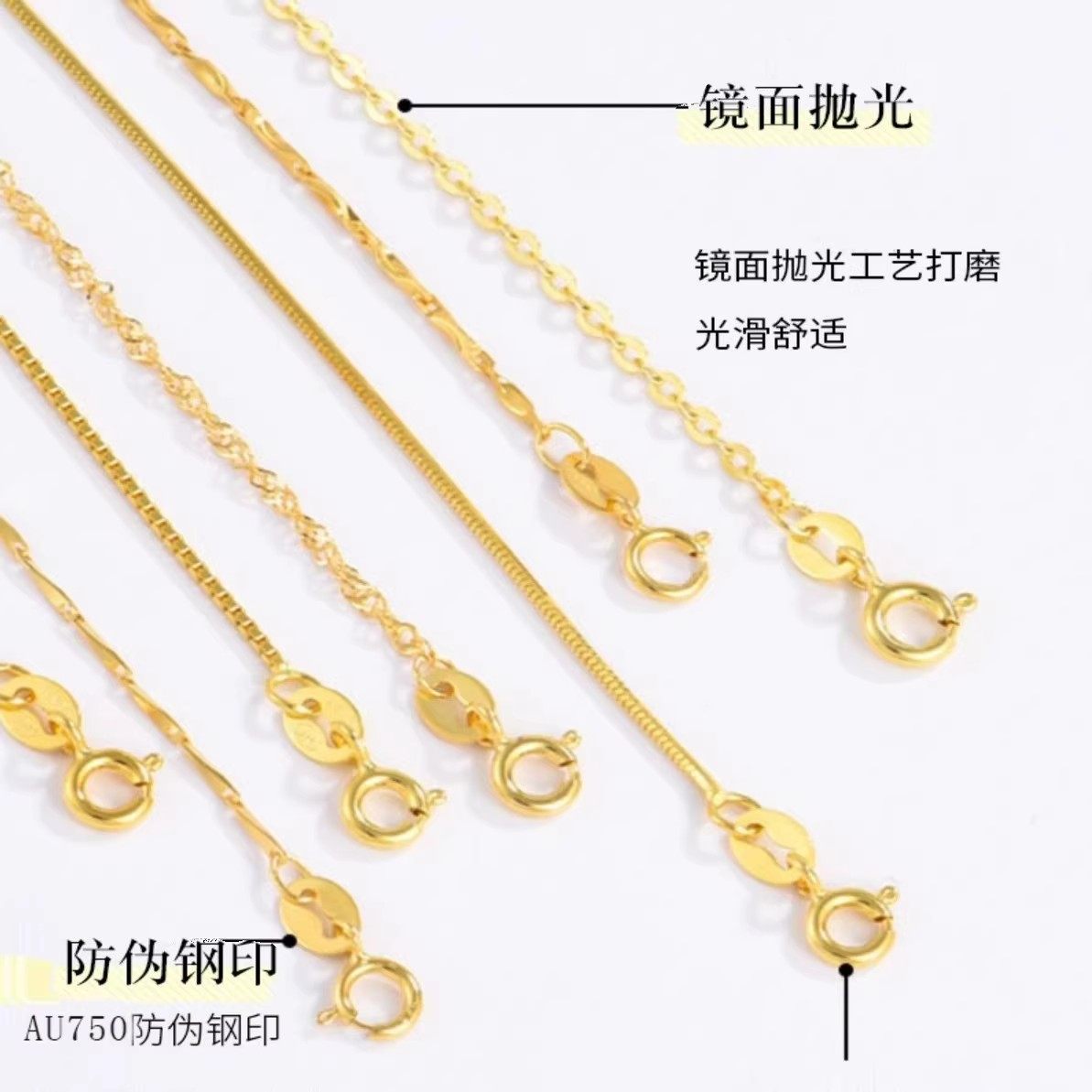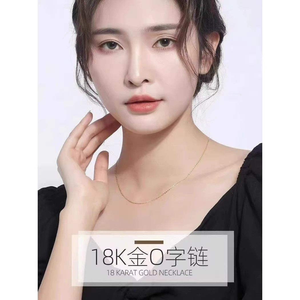 正品 18K金项链女黄金色百搭素链O字链白金锁骨链生日礼物送女朋友