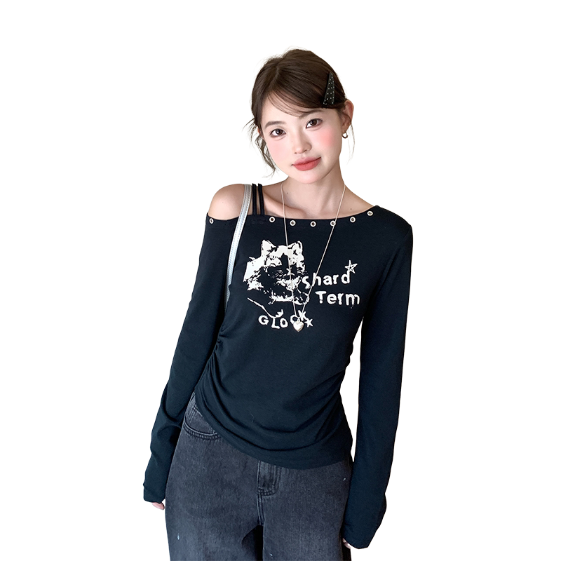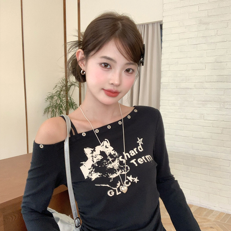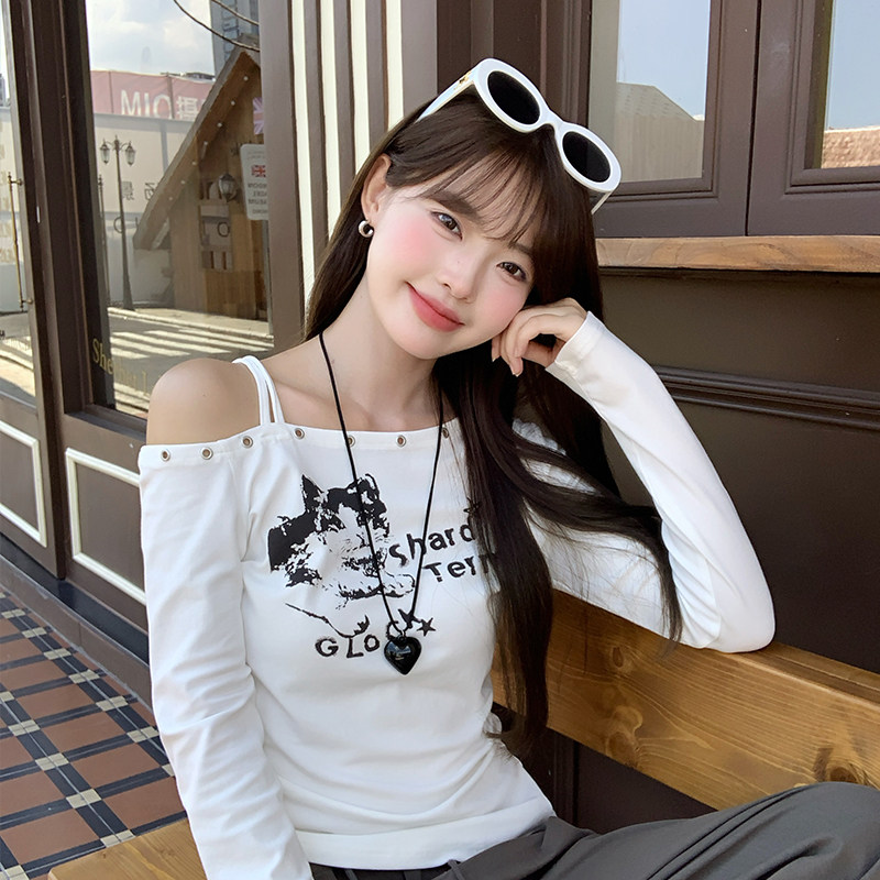 新款 女内搭2026春装 露肩巨好看斜肩上衣 T恤打底衫 白色一字肩长袖