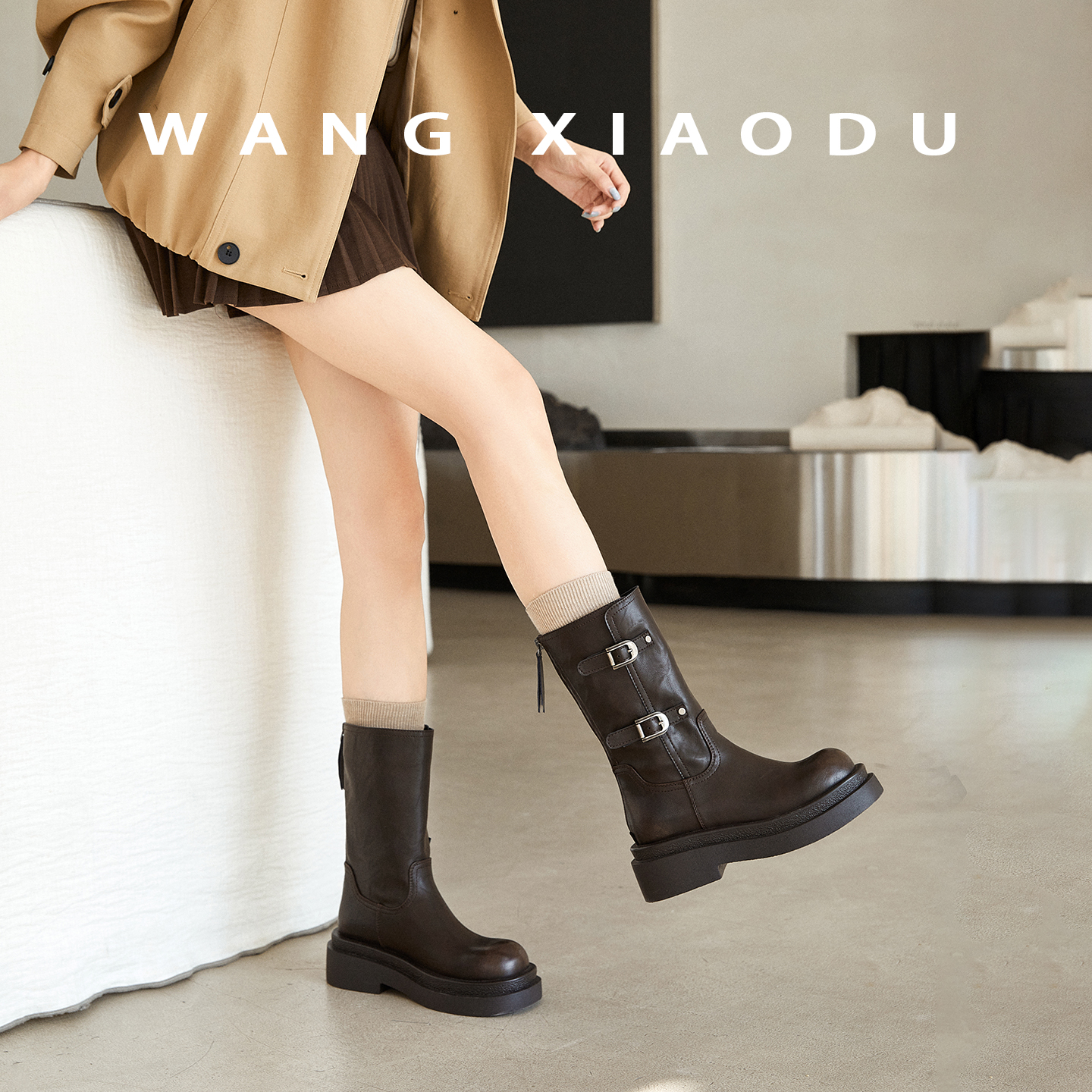 骑士靴 无di版 5.5cm厚底骑士靴女显瘦复古粗跟长靴 王小毒