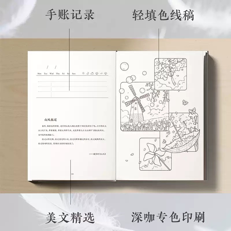 轻填色书 唯美生活一本静心减压 随书周边共6件彩色铅笔水彩适用缓解焦虑解压治成人涂色解压书 官方正版