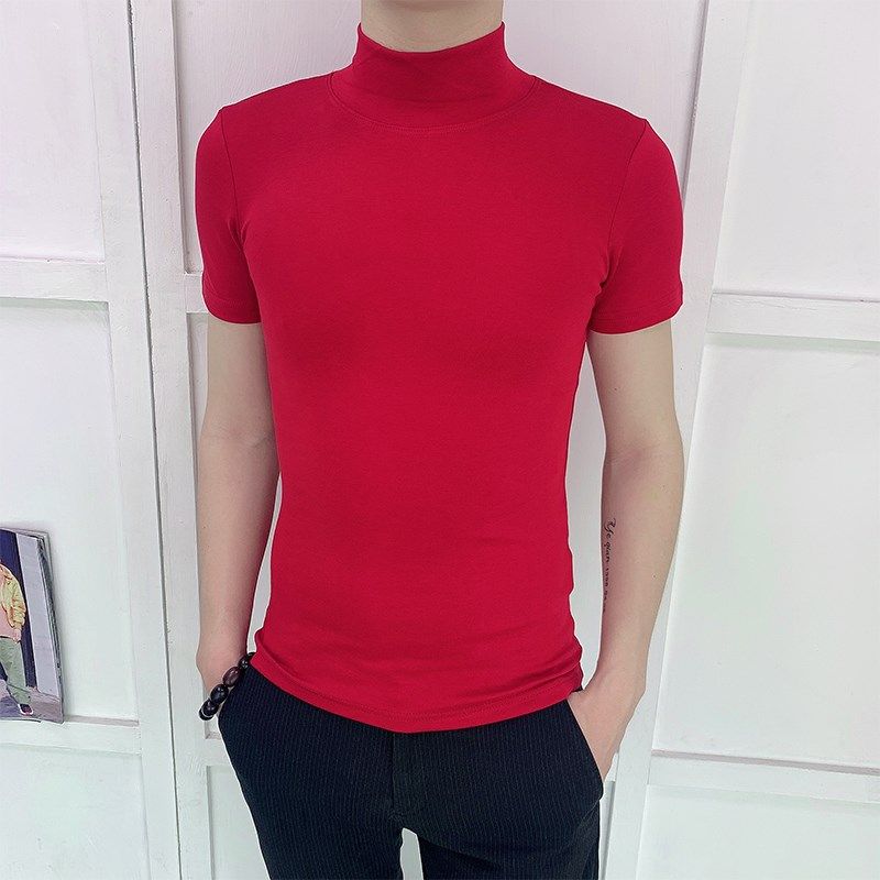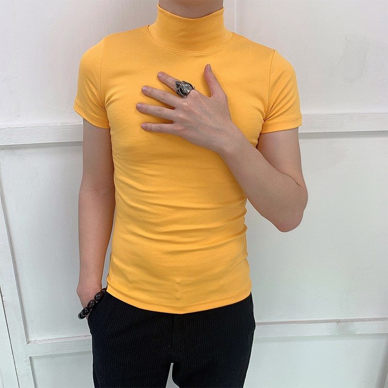t恤男韩版 短袖 修身 潮流个性 体恤 2020夏季 半高领紧身打底半袖 新款