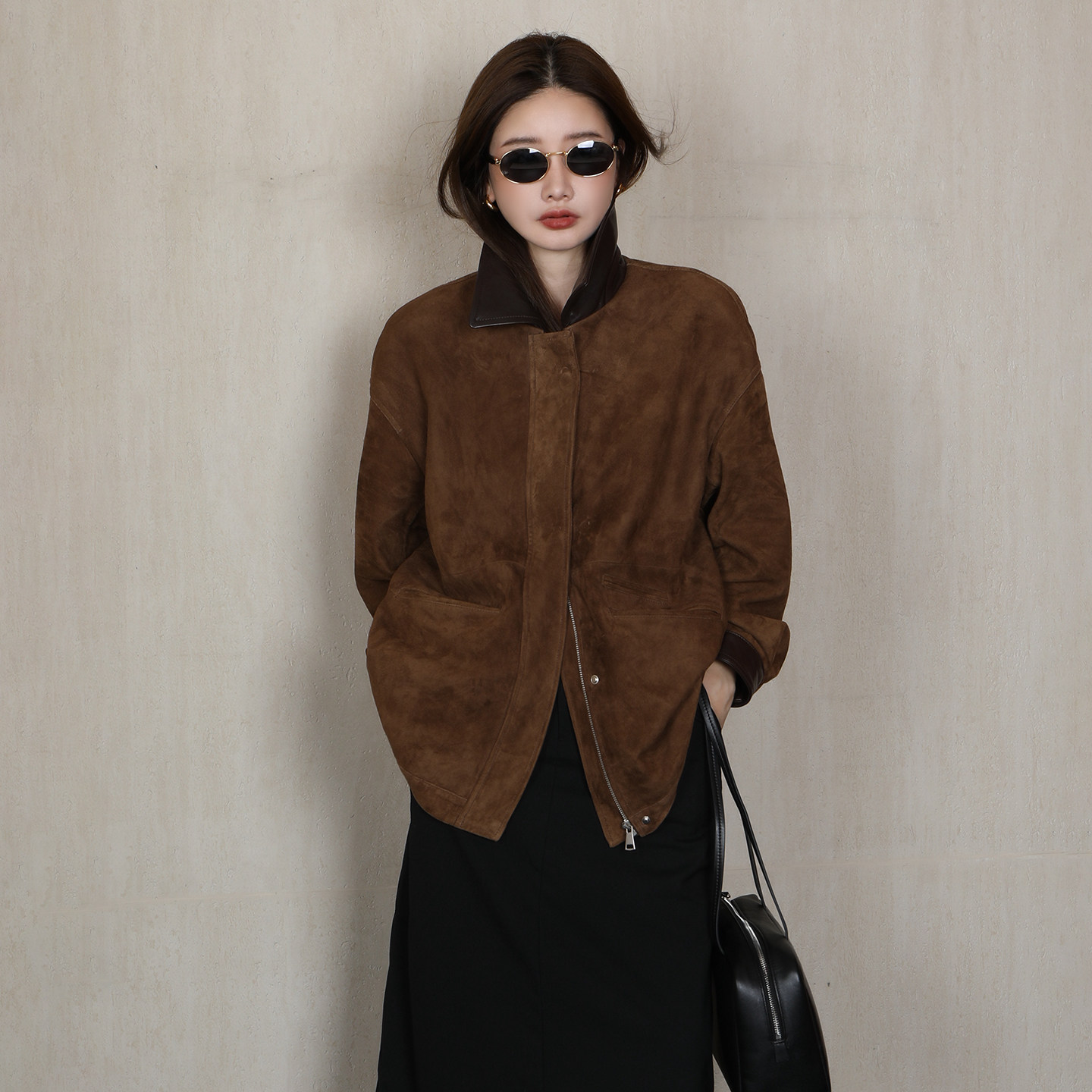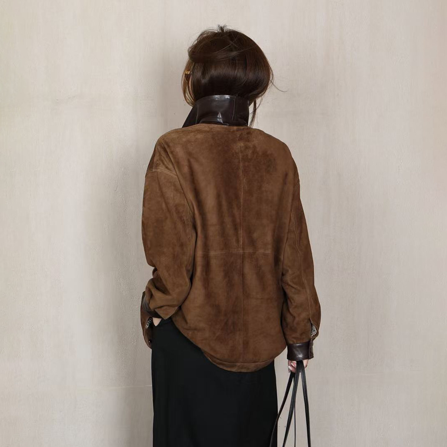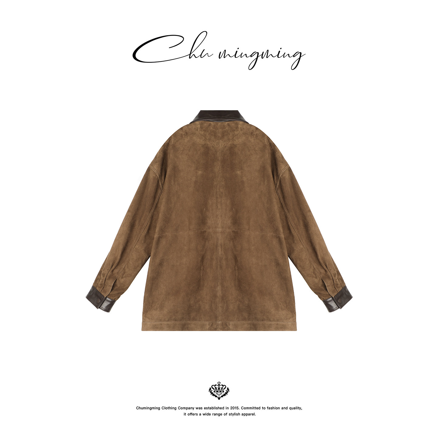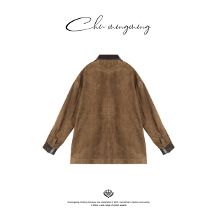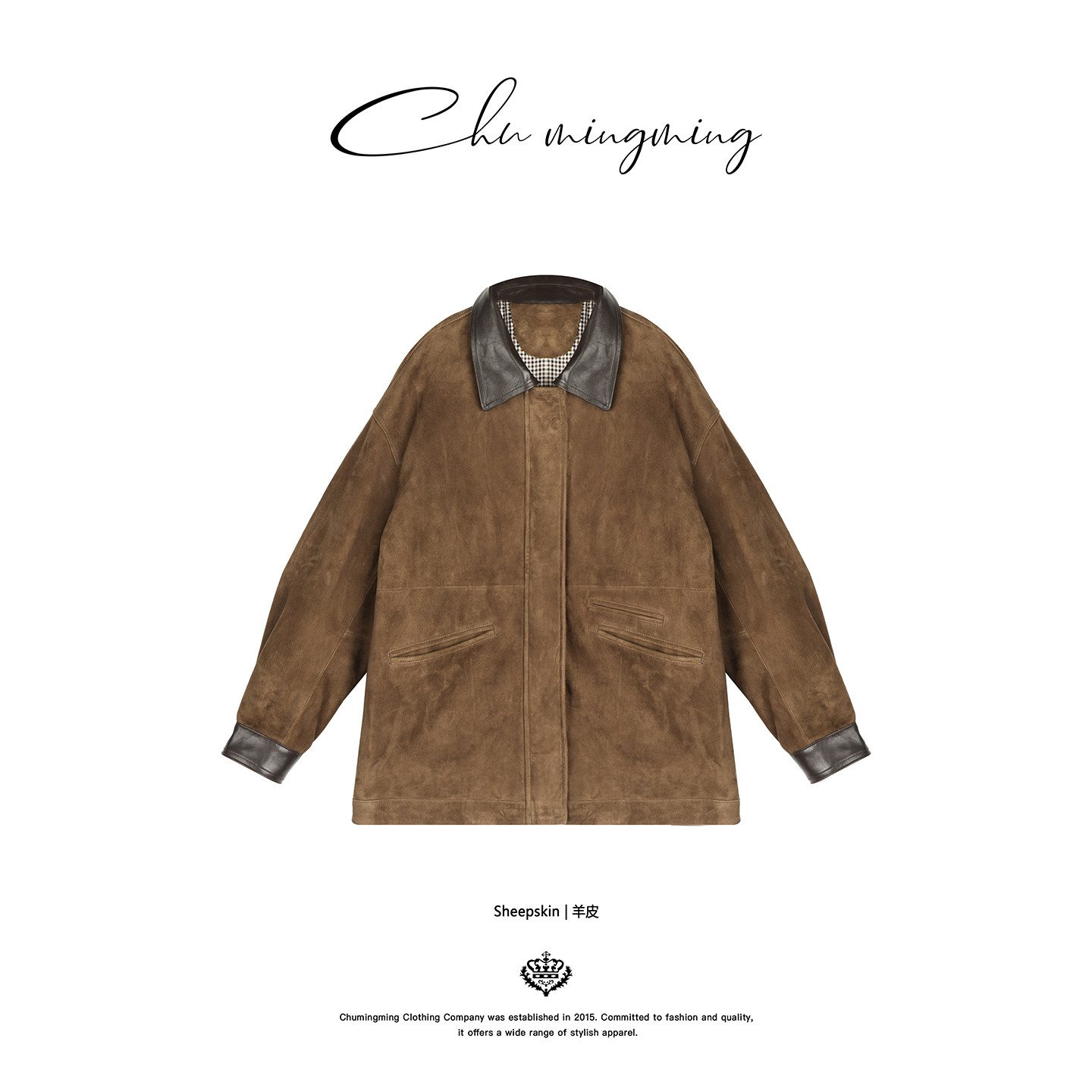 新款 英伦反绒皮草2026春季 女轻奢复古老钱风短外套 棕格 CHU楚妞