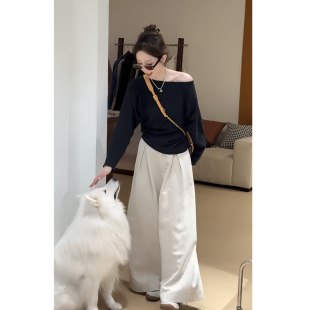 早秋一整套穿搭套装 两件套女 韩系设计感减龄一字领气质上衣阔腿裤