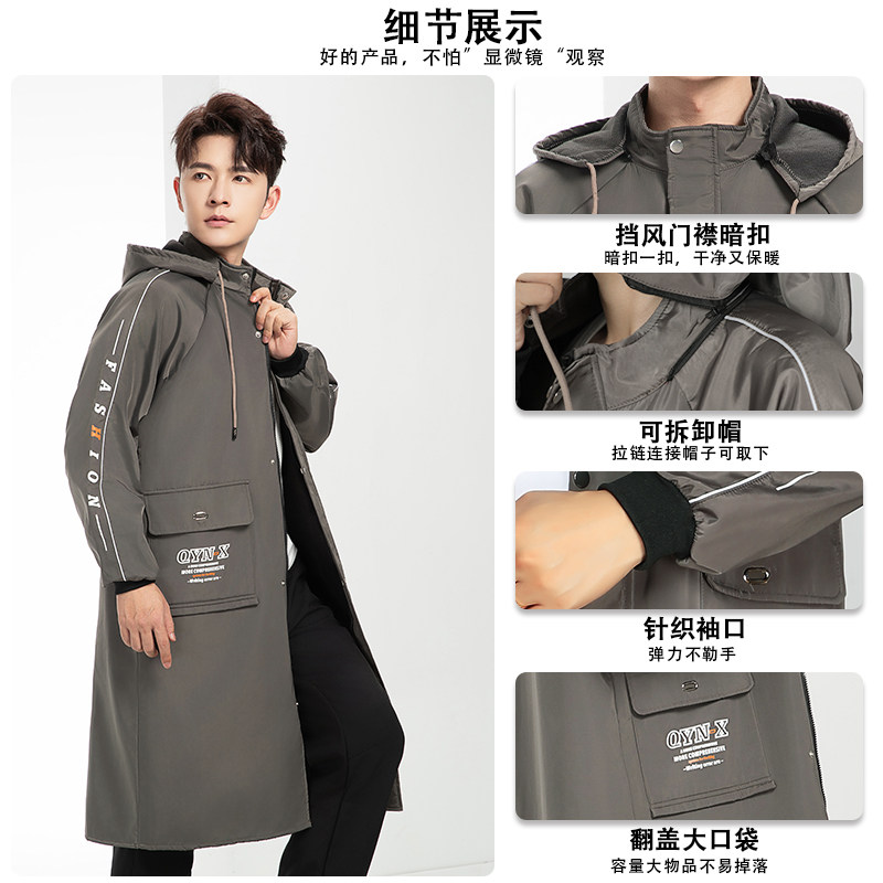 加长过膝大褂工作服罩衣男款 防水加绒加大劳保服外套 车间汽修工装