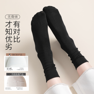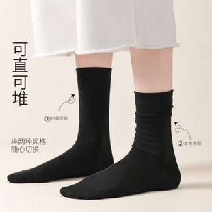长筒袜 堆堆袜小皮鞋 袜子女春夏薄款 黑色纯棉中筒袜春秋搭配勃肯鞋