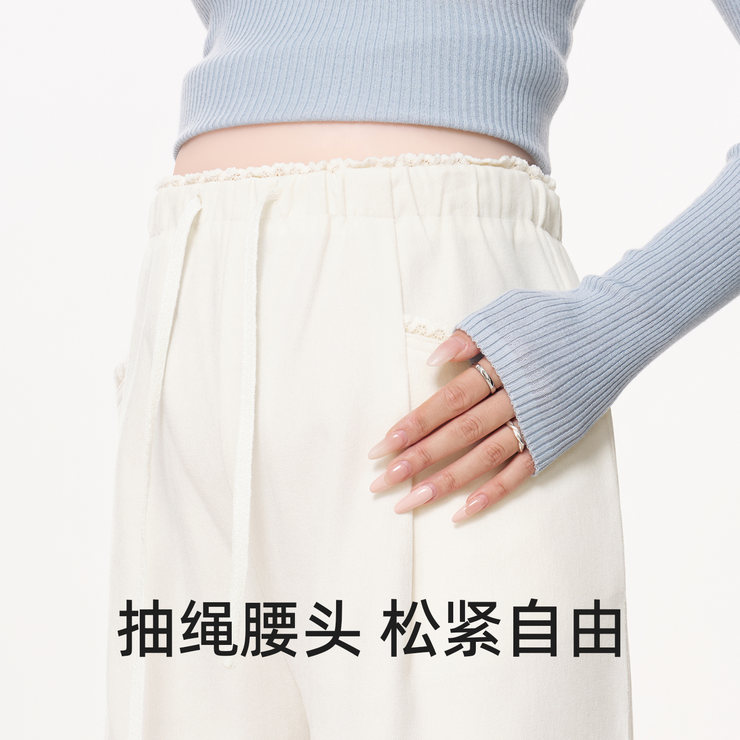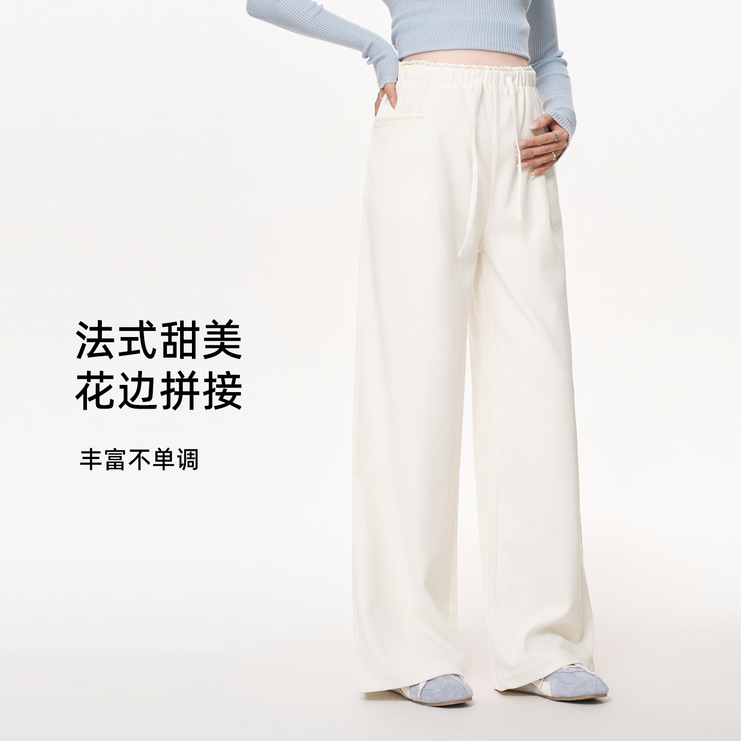 孕期不勒肚子阔腿长裤 秋冬装 秋外穿花边加厚糯米裤 MASANON孕妇裤