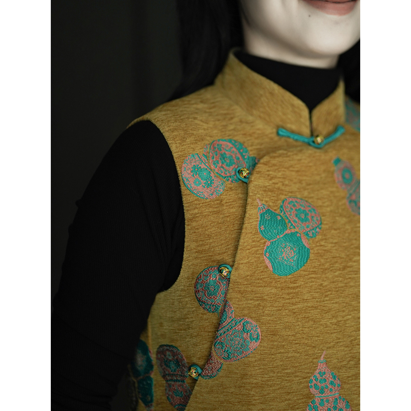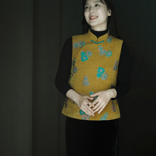 坎肩 国风盘扣无袖 艾绘馆新中式 复古灯芯绒立领马甲背心女秋冬季