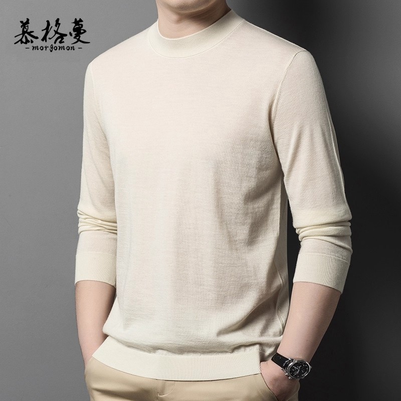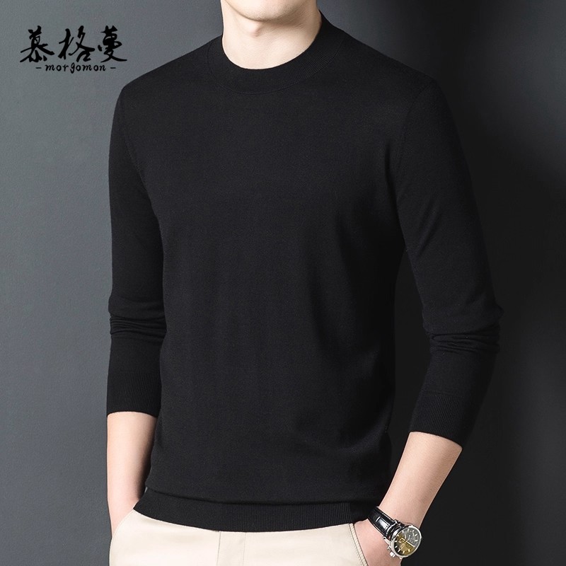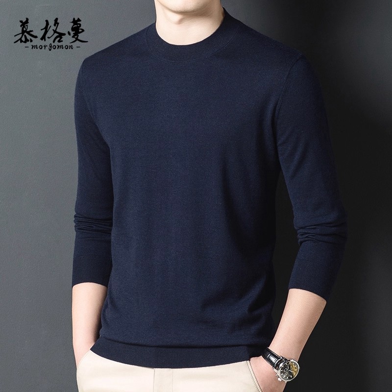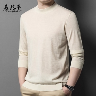 毛衣中领针织提花圆领羊绒衫 半高领加厚冬季 男士 罗蒙100%纯羊毛衫