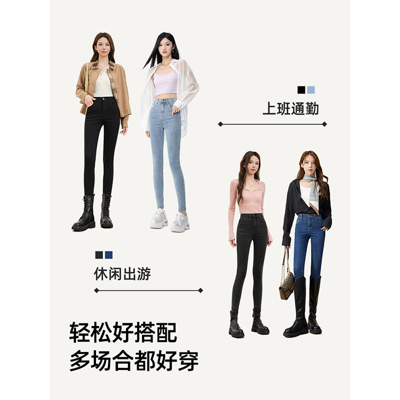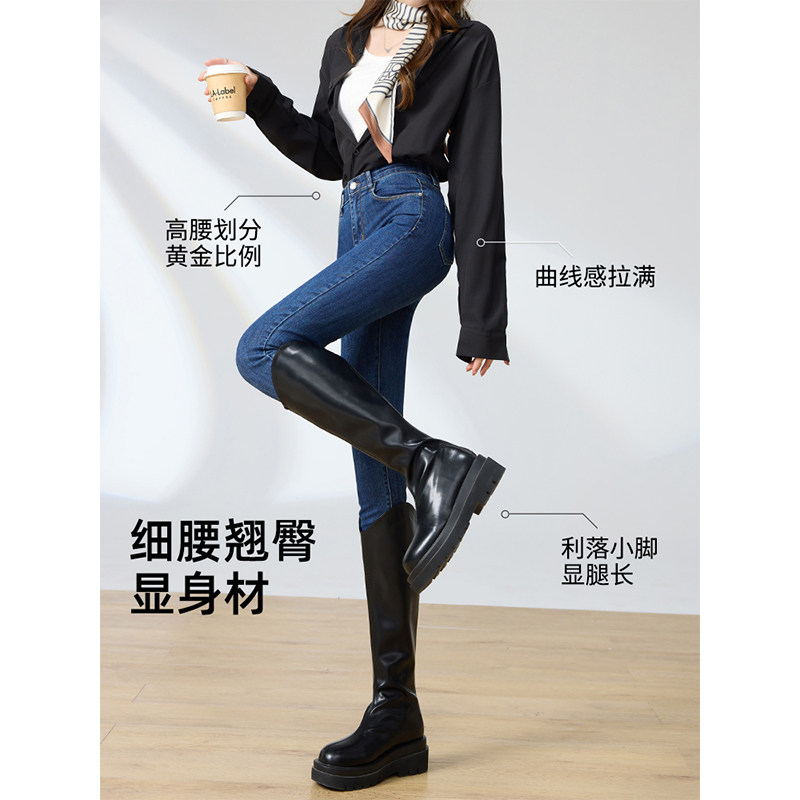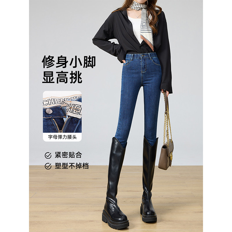 加绒加厚小脚长裤 显瘦铅笔冬季 女2025年春秋新款 深蓝色紧身牛仔裤