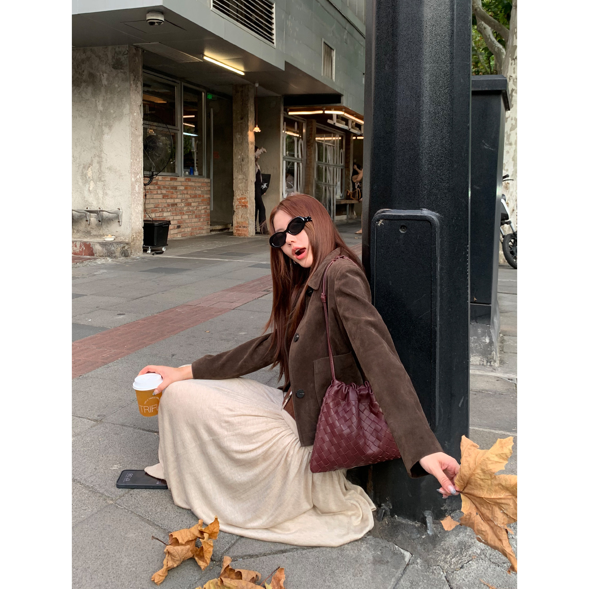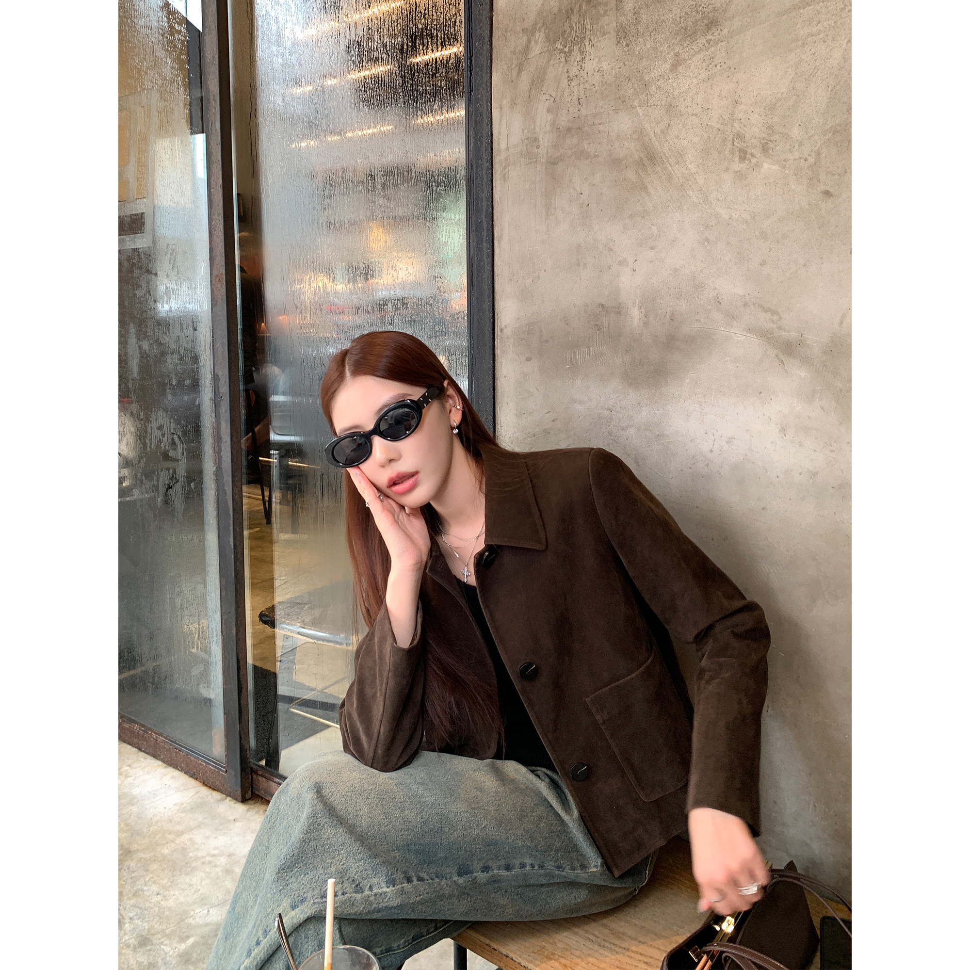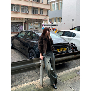 复古麂皮翻领夹克女短款 巴恩美学 皮衣外套 现货7折 pusumede