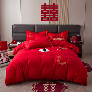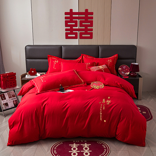 婚庆大红色四件套纯棉水洗棉结婚床上用品陪嫁喜庆高级感床单被套