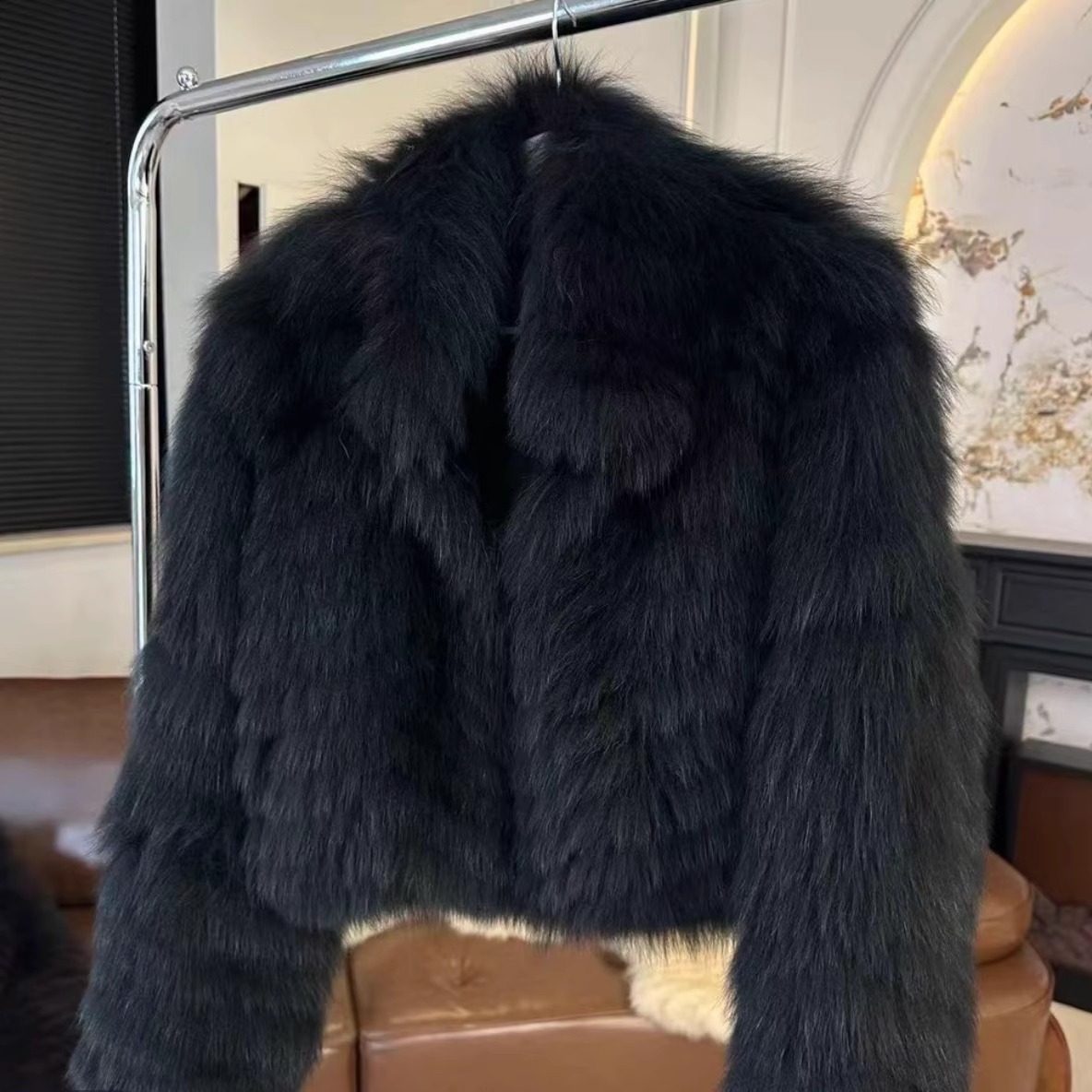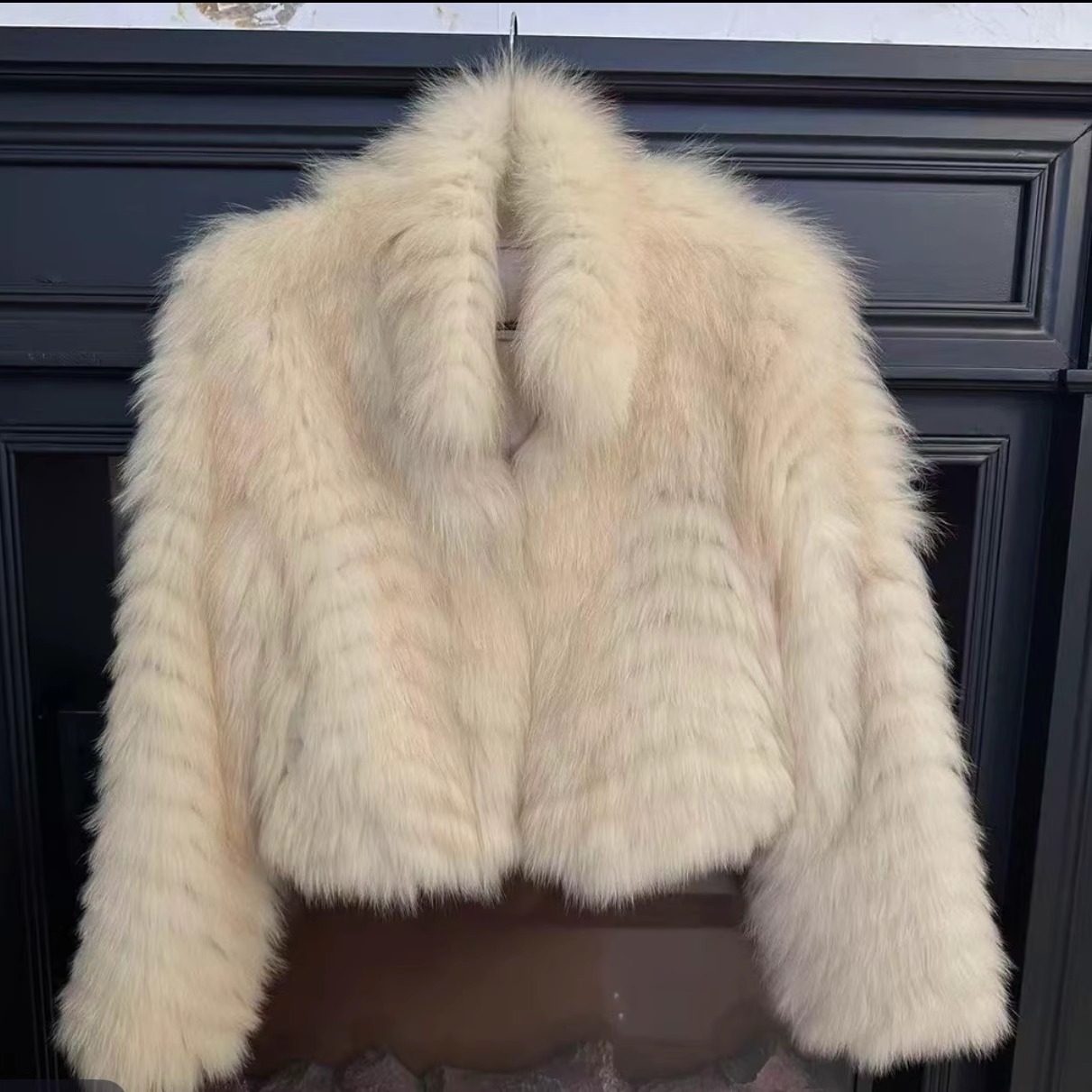 进口蓝狐坎毛晕染霜色V领短款 霜华映月 狐狸毛皮草外套女