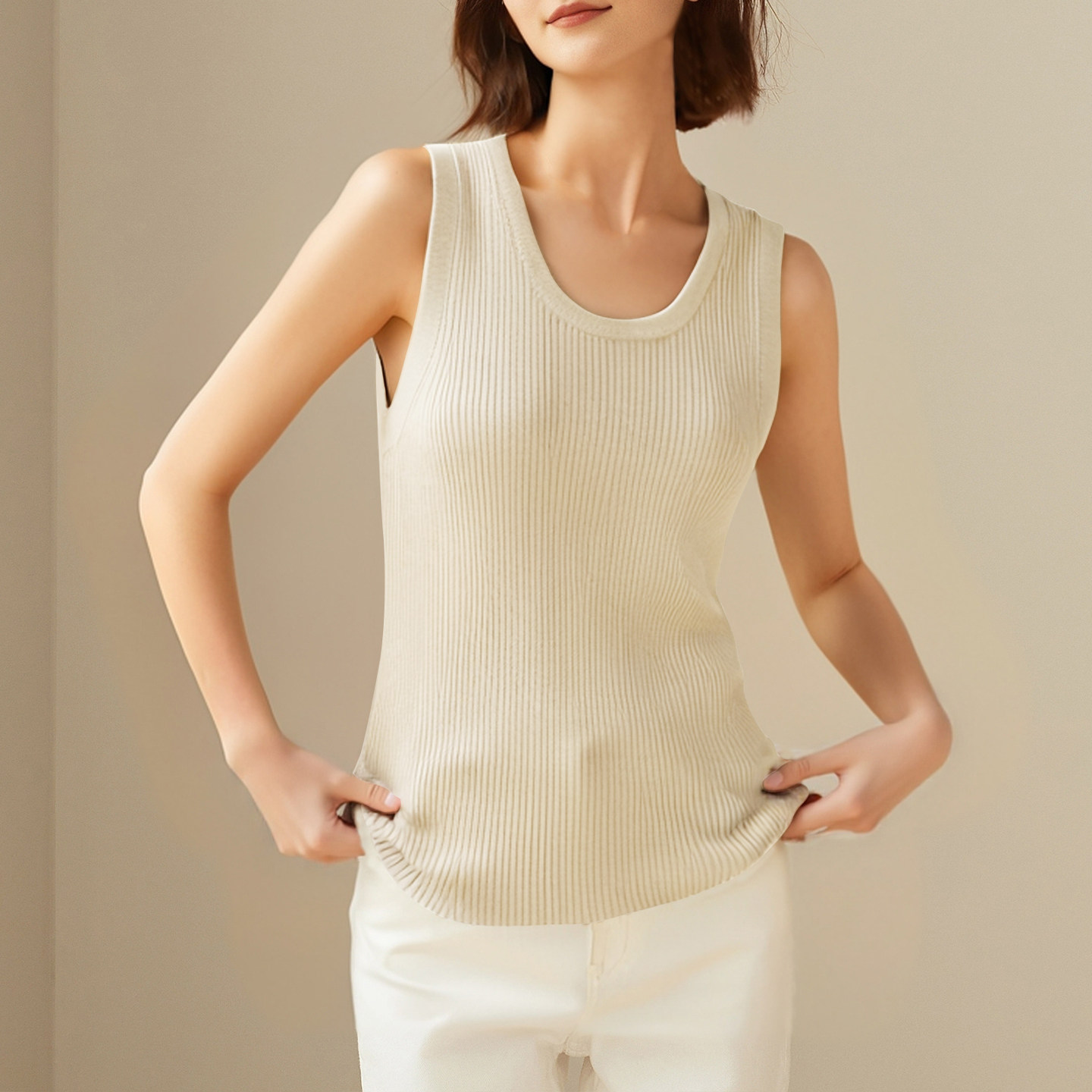 鹿王100%山羊绒背心女圆领抽条组织针织无袖 内搭外穿25秋冬新款
