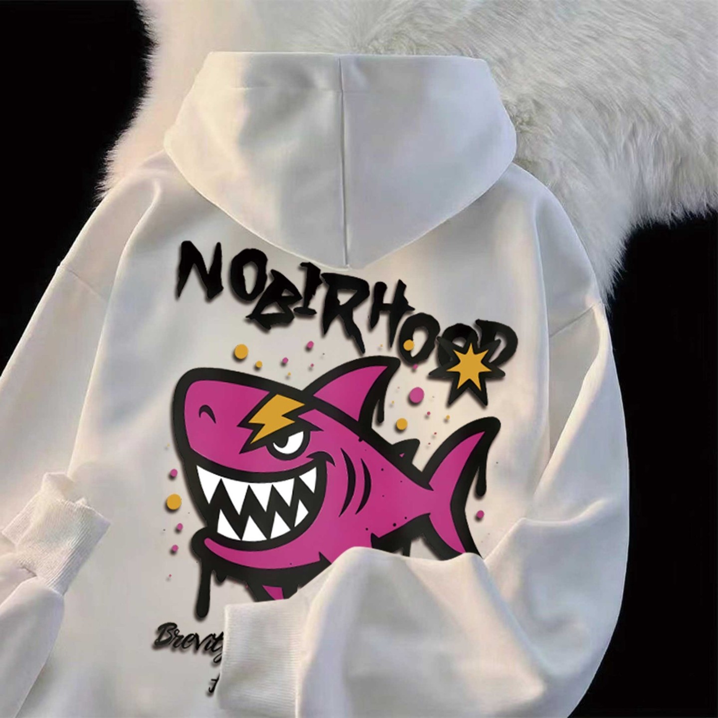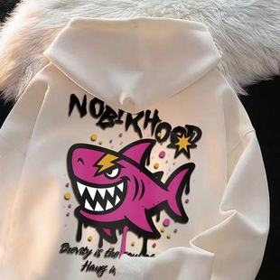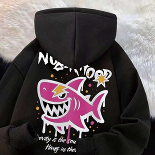 休闲风基础加厚打底装 涂鸦粉鲨连帽卫衣潮甜酷风情侣装 新款 秋冬季