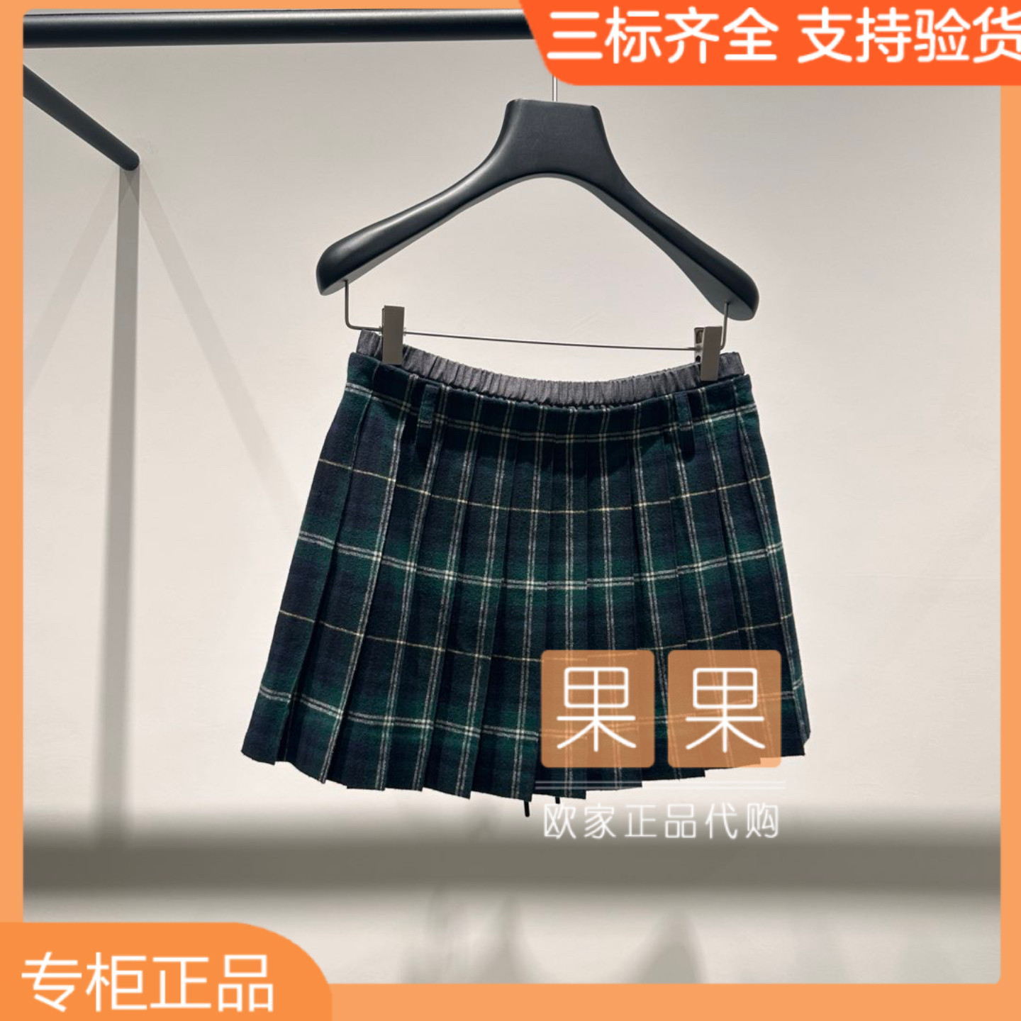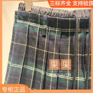 欧时力2025秋国内代购 1SY3070630 格子高腰百褶休闲半身裙百搭短款