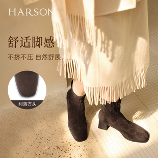 靴超软羊皮切尔西靴B7E1DDD5 瘦瘦短靴加绒时装 百丽女靴冬季 新款
