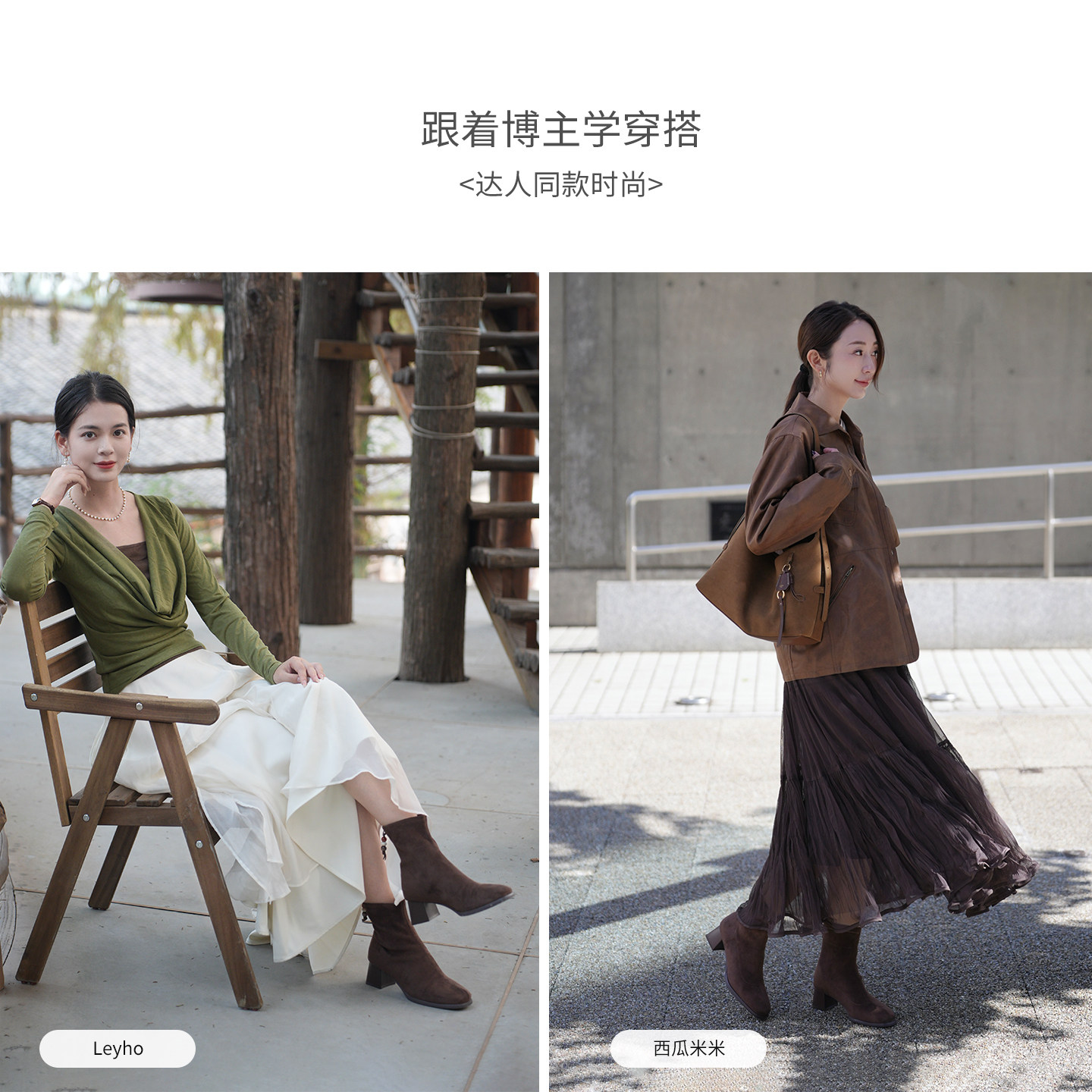 马丁靴 瘦瘦靴后拉链复古粗跟时装 法式 尖头高跟短靴女2025秋冬新款