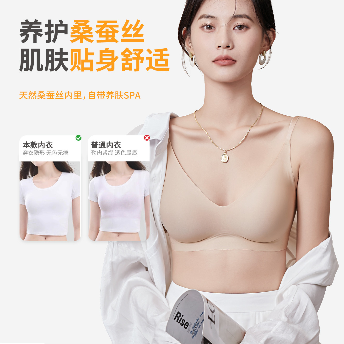 有内桑蚕丝内衣无痕2025新款 无痕无钢圈软支撑大胸显小文胸罩 爆款