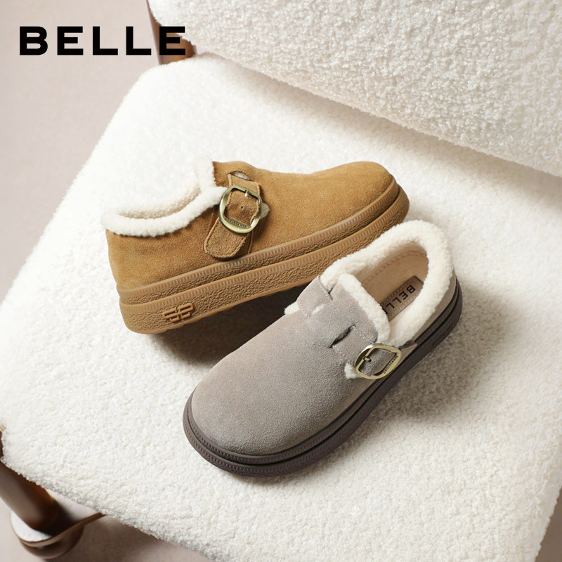 雪地靴棉鞋 百丽女鞋 新款 2025冬季 B2922DM5 子加绒保暖毛毛勃肯鞋