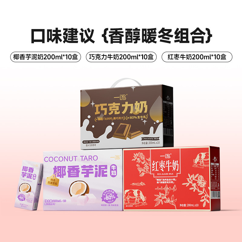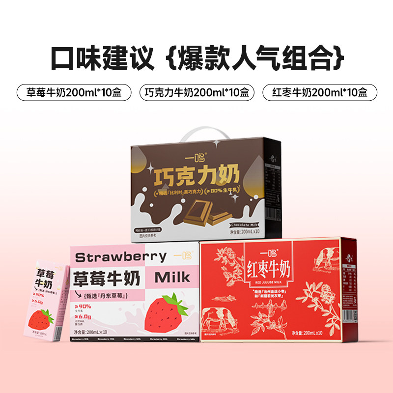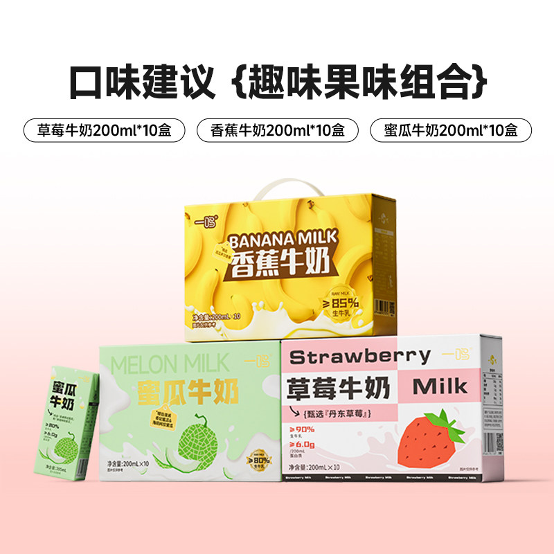 一鸣牛奶草莓红枣巧克力香蕉蜜瓜组合装 任选3箱 早餐奶 89元