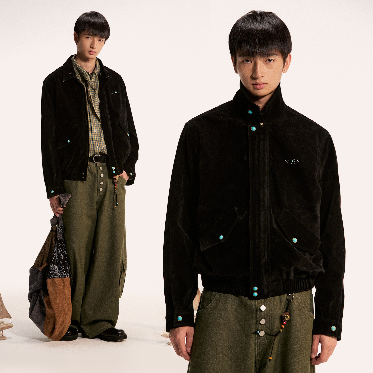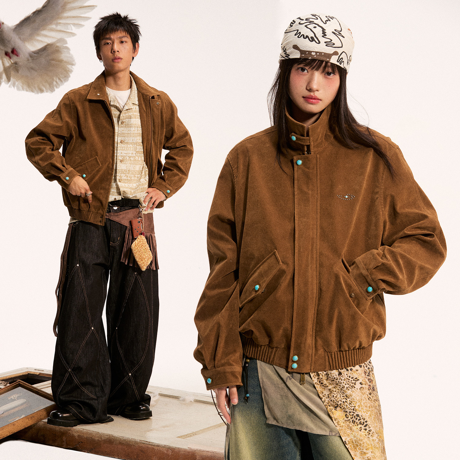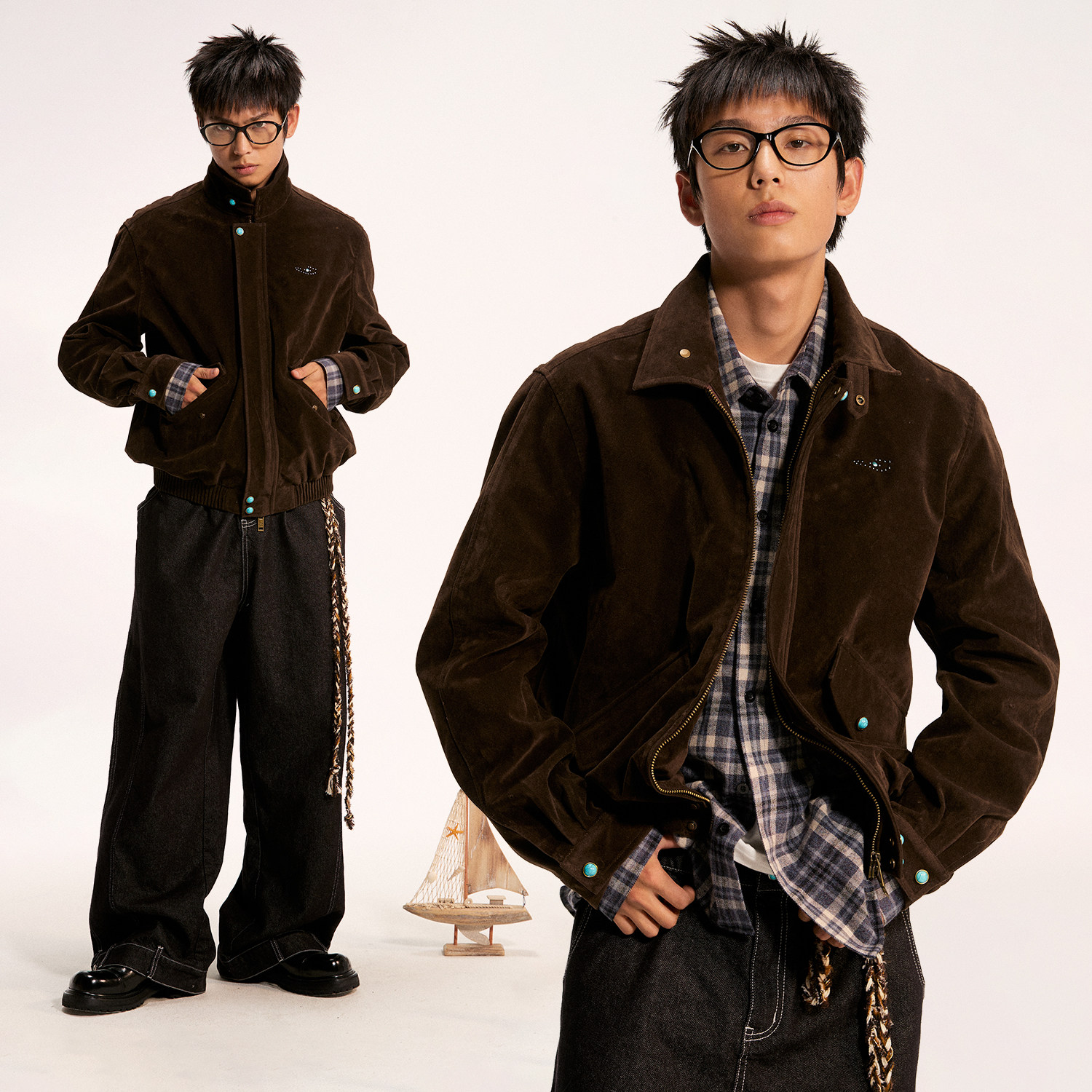 @港仔文艺男 复古青少年claenfit皮夹克 麂皮绒皮衣外套男秋冬美式