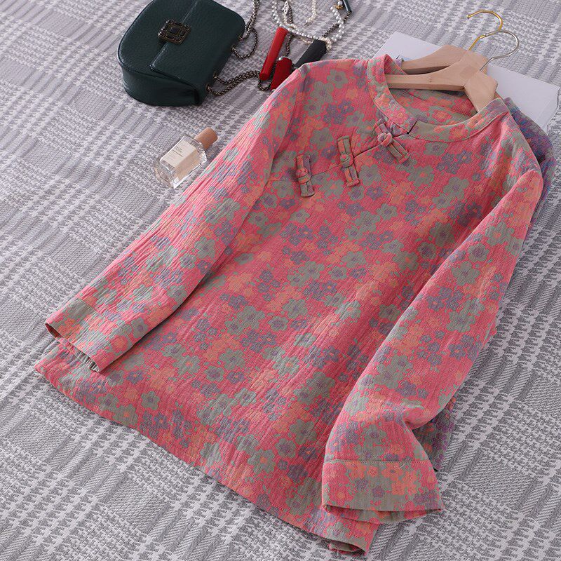 家居服夏季 纯棉双层纱布盘扣睡衣女 宽松版 新中式 复古春秋款