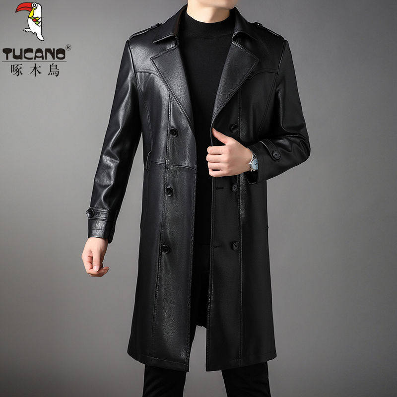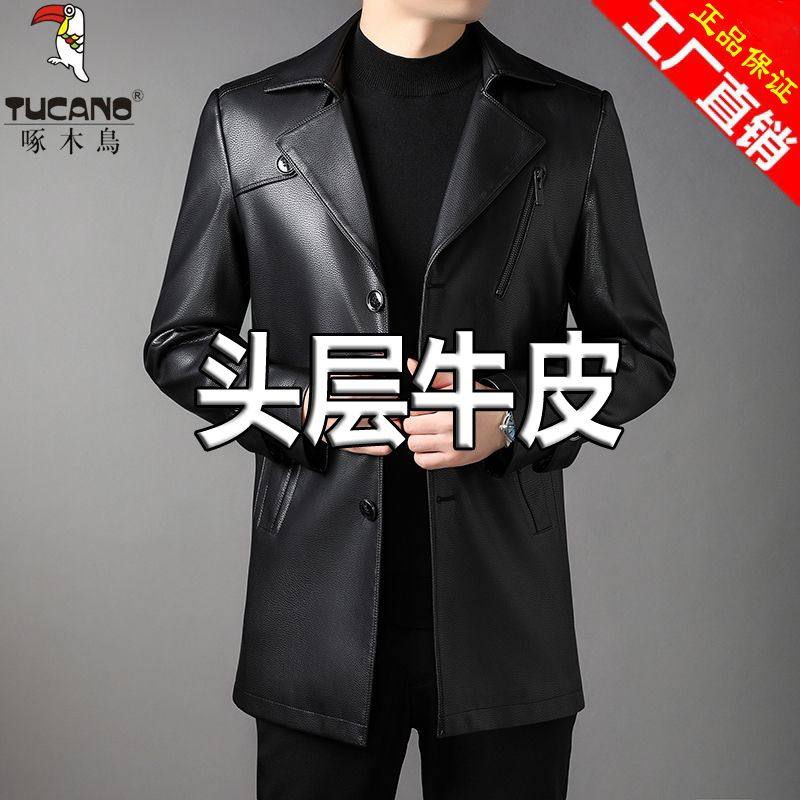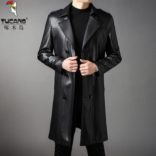 外套 过膝皮风衣休闲爸爸装 啄木鸟秋冬新款 头层牛皮真皮皮衣男长款