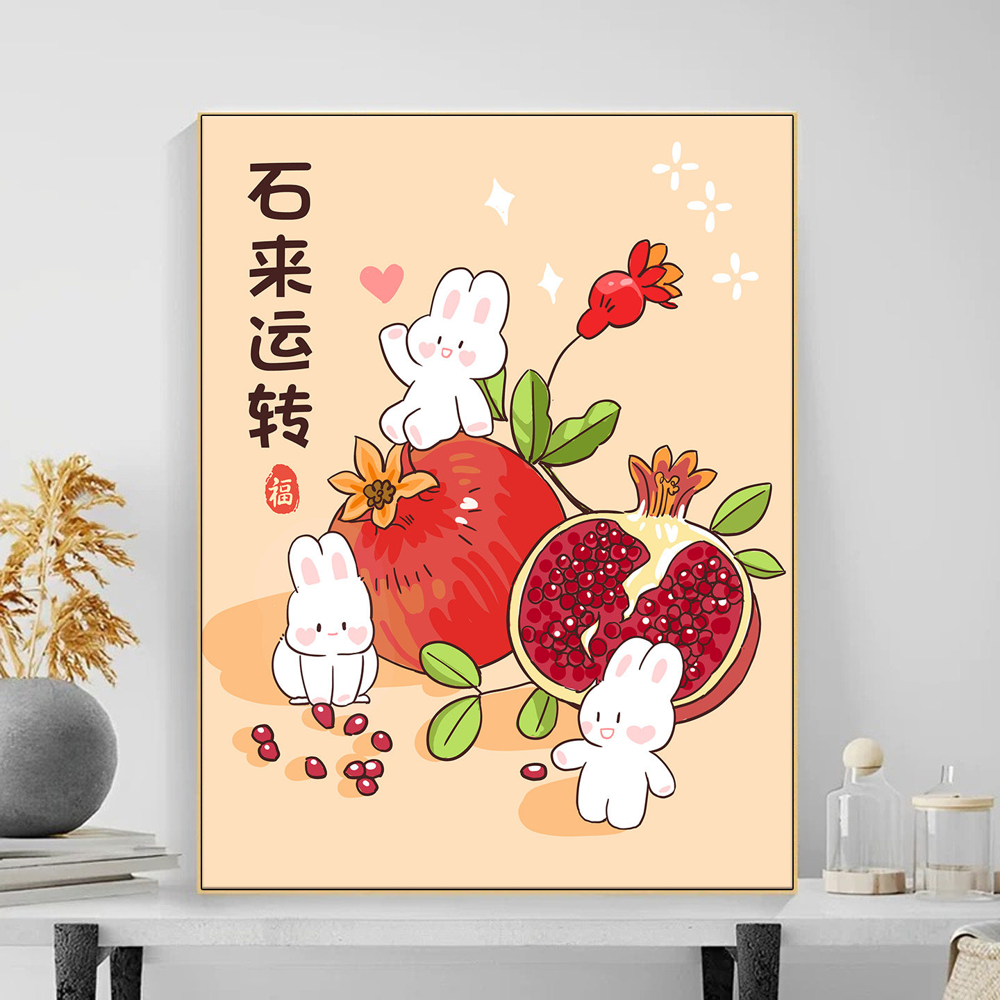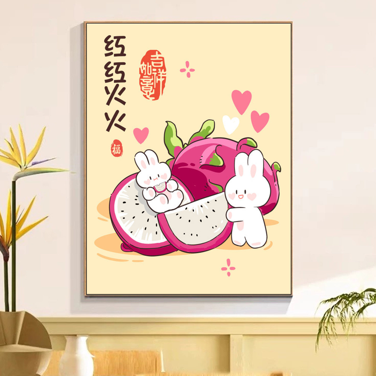 事事如意数字油画diy填色涂色水果兔子卡通可爱丙烯油彩装 饰挂画
