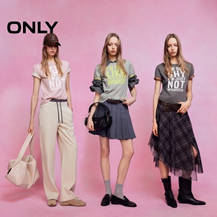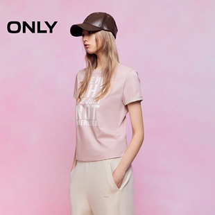 上衣T恤女 撞色宣言印花圆领显瘦正肩字母短袖 ONLY2026春季 新款