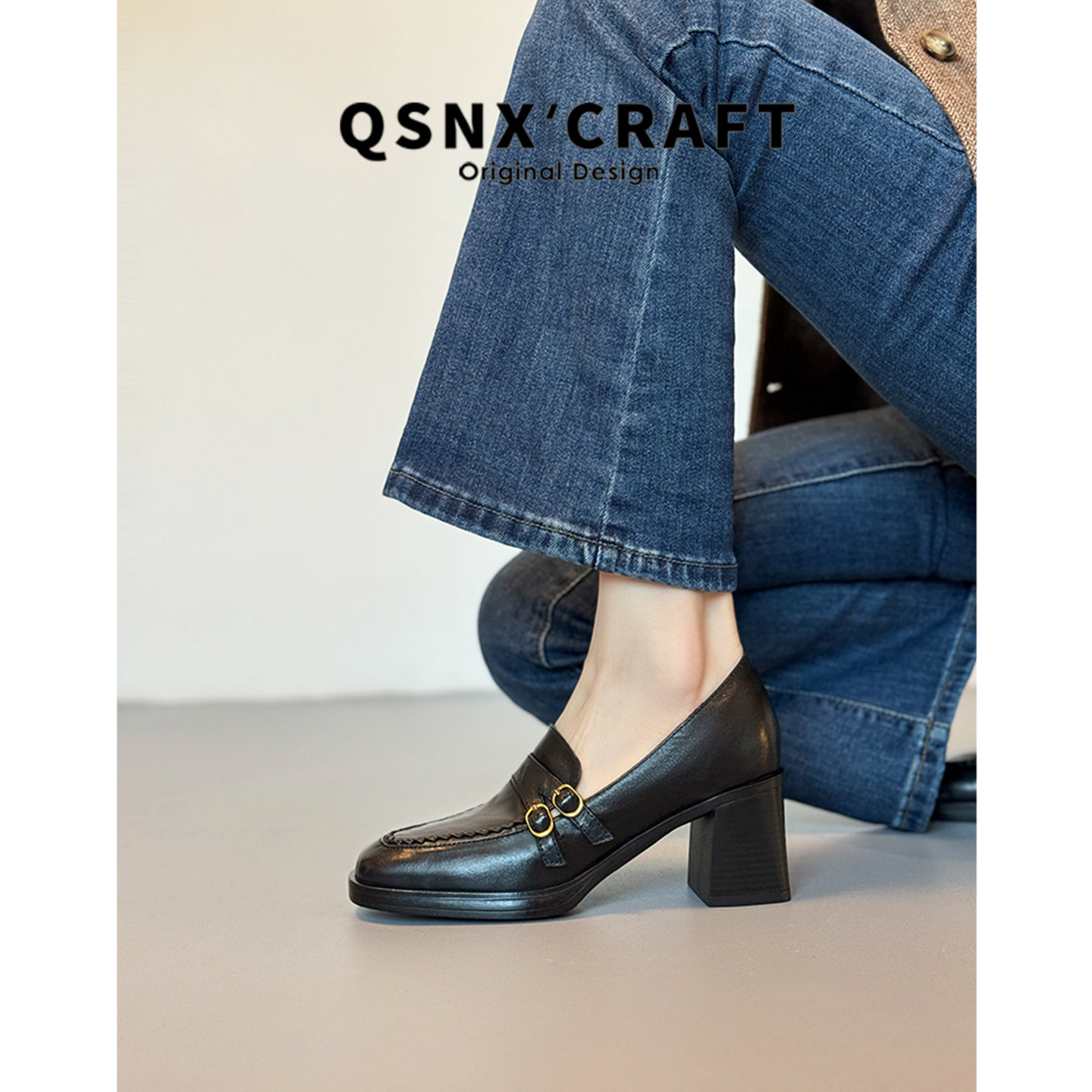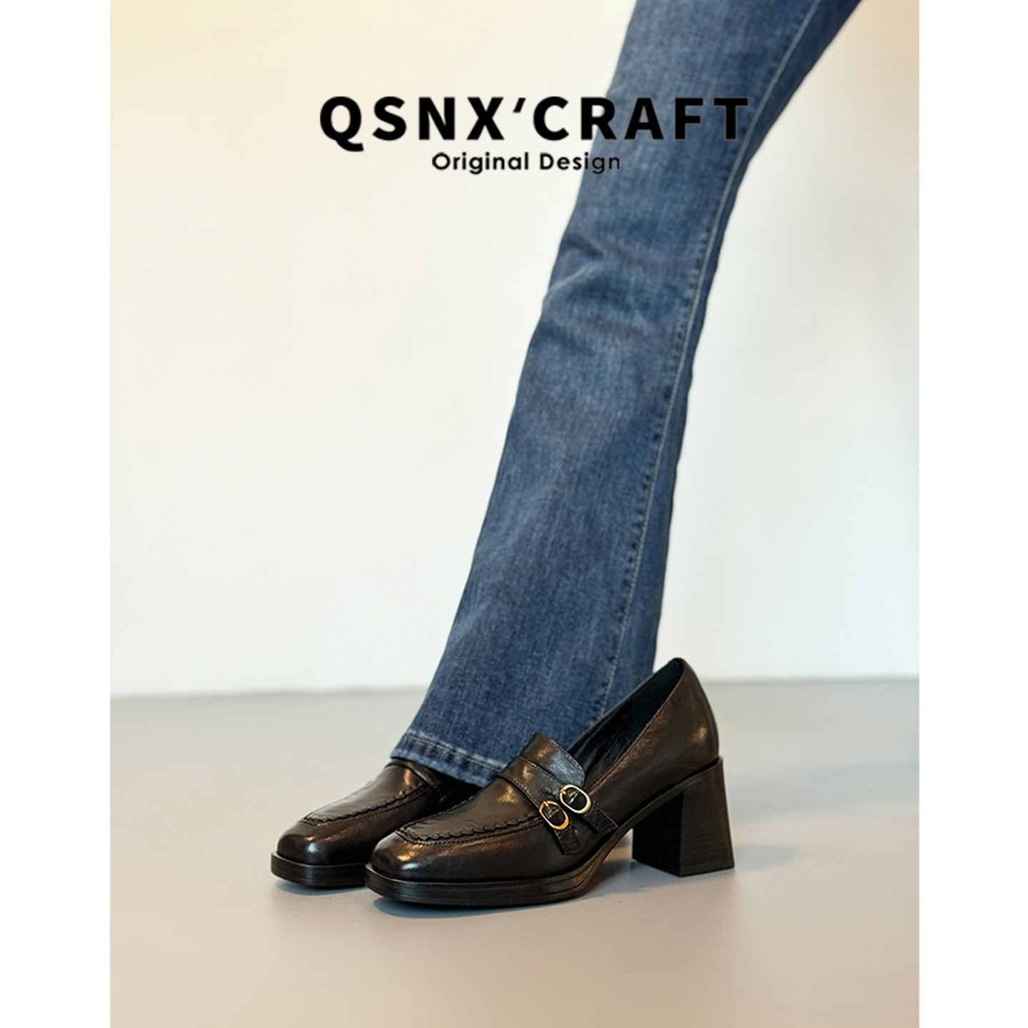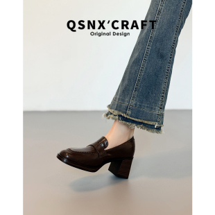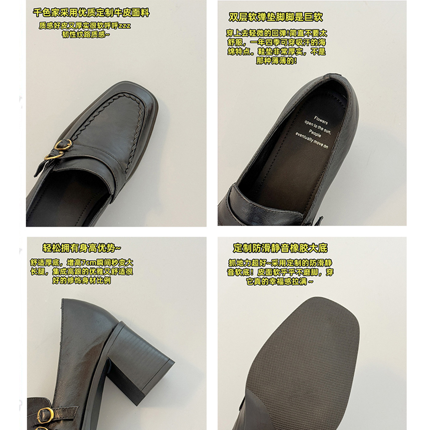 一脚蹬百搭通勤小皮鞋 女2025新款 子 英伦风方头粗跟乐福鞋 牛皮版