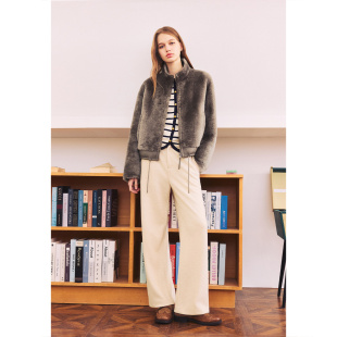 新款 诗篇专选羔羊绒皮毛一体短款 立领皮草外套2026春季