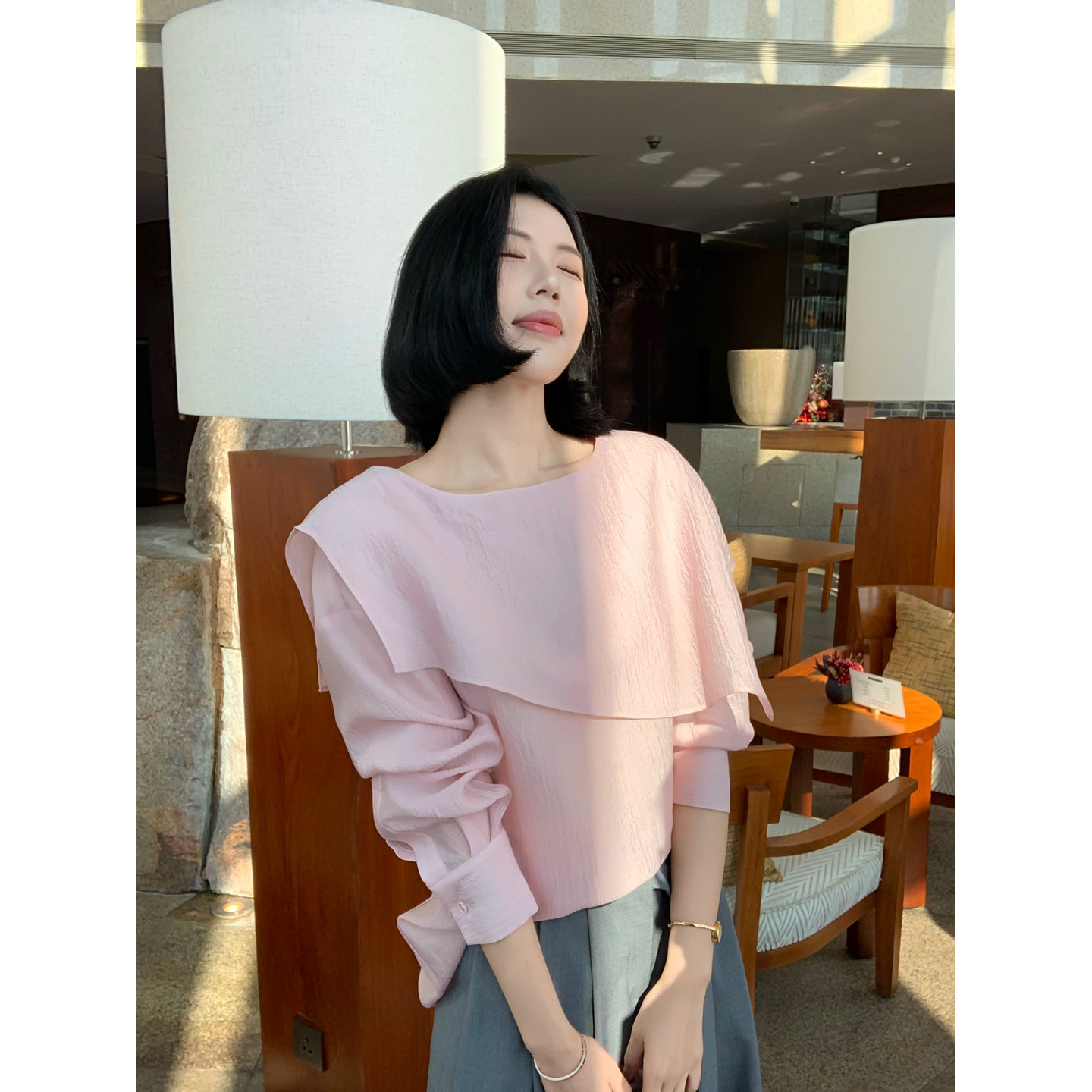 肌理感大翻领显瘦上衣女S2628 26春季 甜辣多多 不规则设计感衬衫