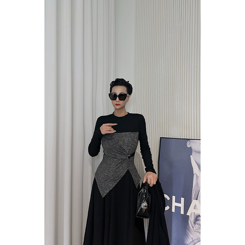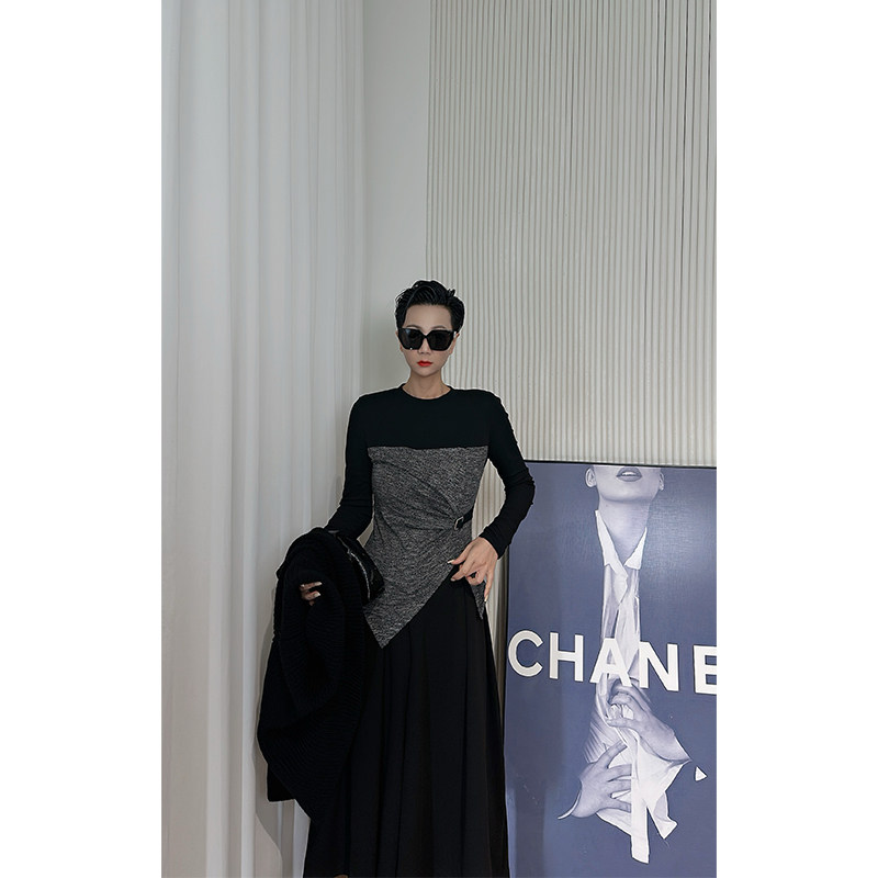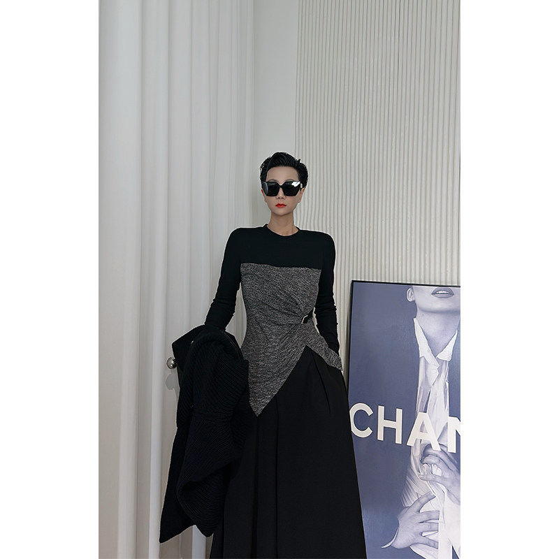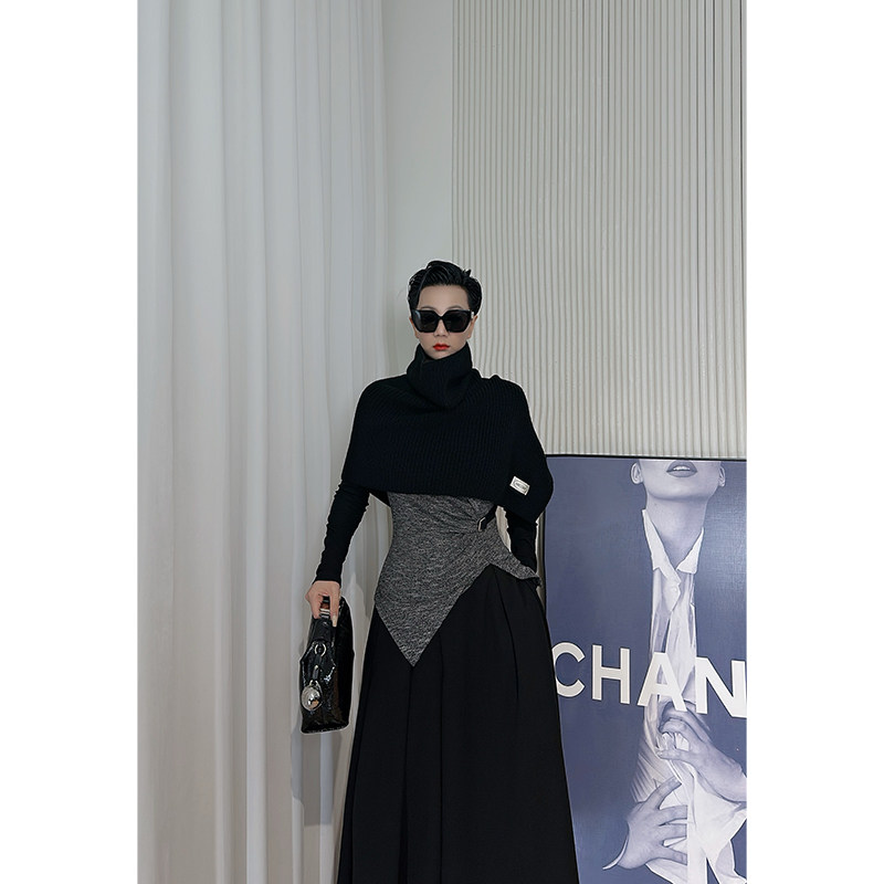 暗黑风高领拼色针织衫 打底衫 女 长袖 黑色修身 Dan