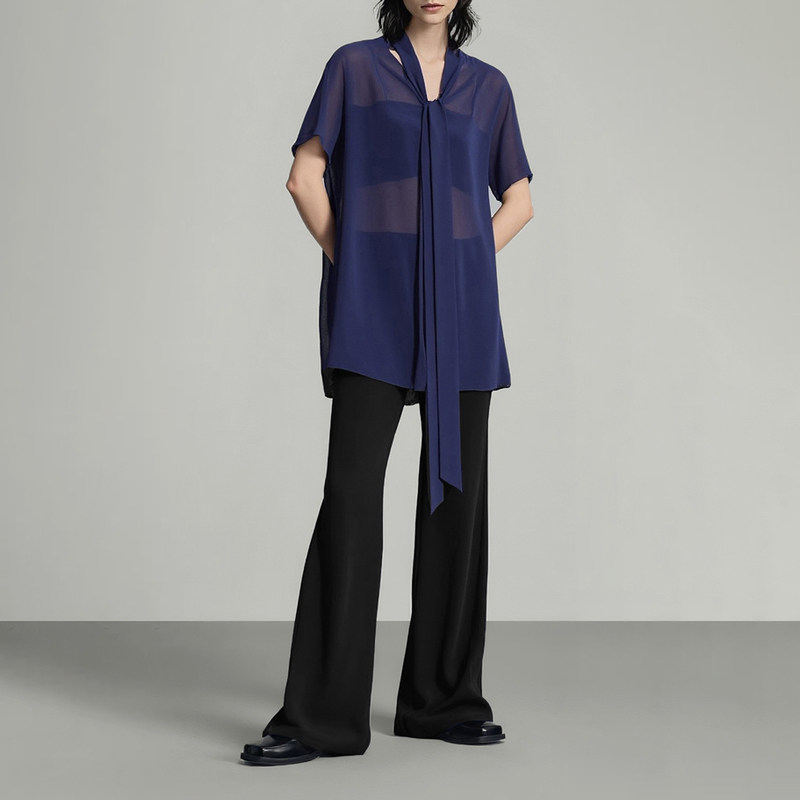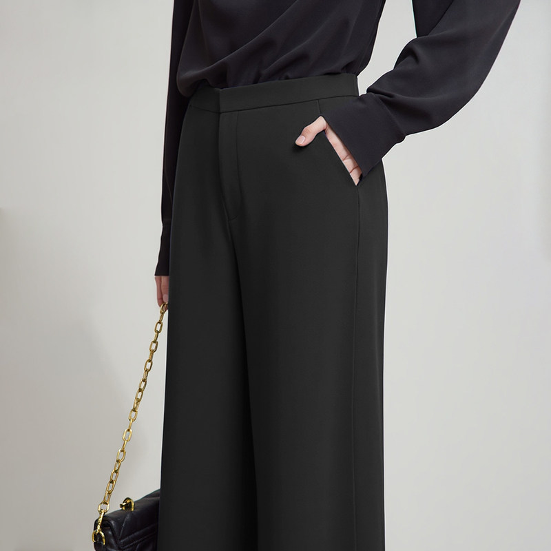 女宽松垂感裤 休闲长裤 子 简约通勤风高腰阔腿裤 Amii2026夏新款