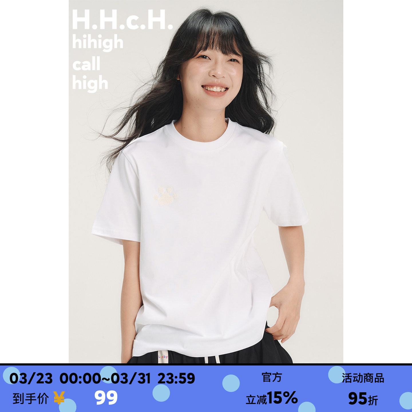 T恤 lucky标软软小狗爪绣花圆领宽松多色短袖 HHCH口海 SS26