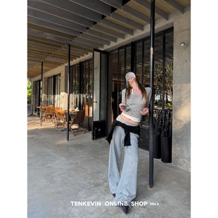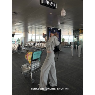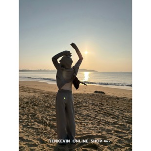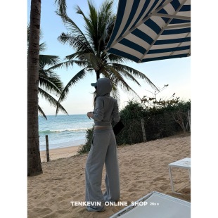 女休闲套装 十一石 连帽卫衣宽松显瘦直筒阔腿卫裤 短款 拉链长袖