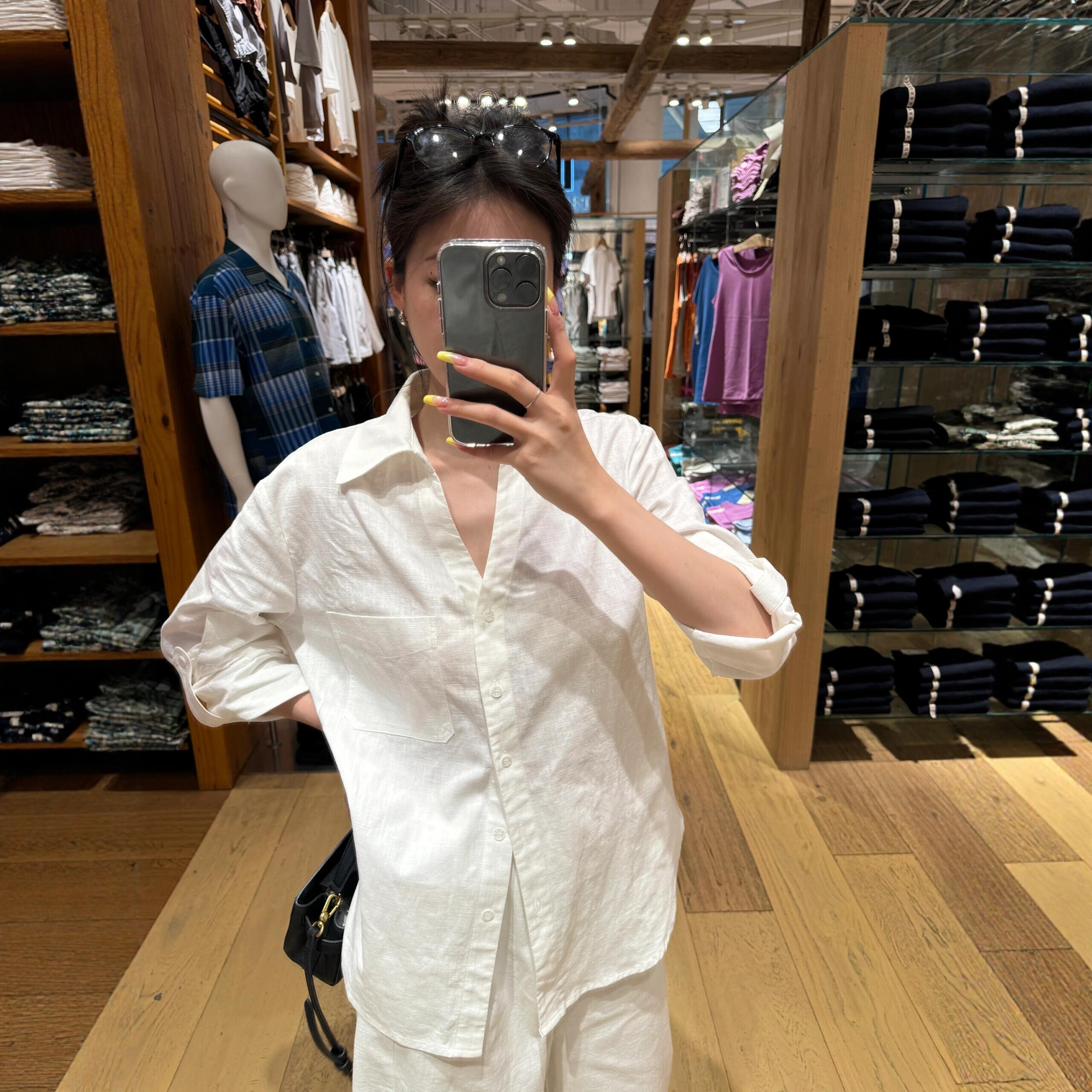 欧货高级感白色亚麻衬衫 女春夏慵懒老钱风休闲棉麻衬衣防晒上衣女