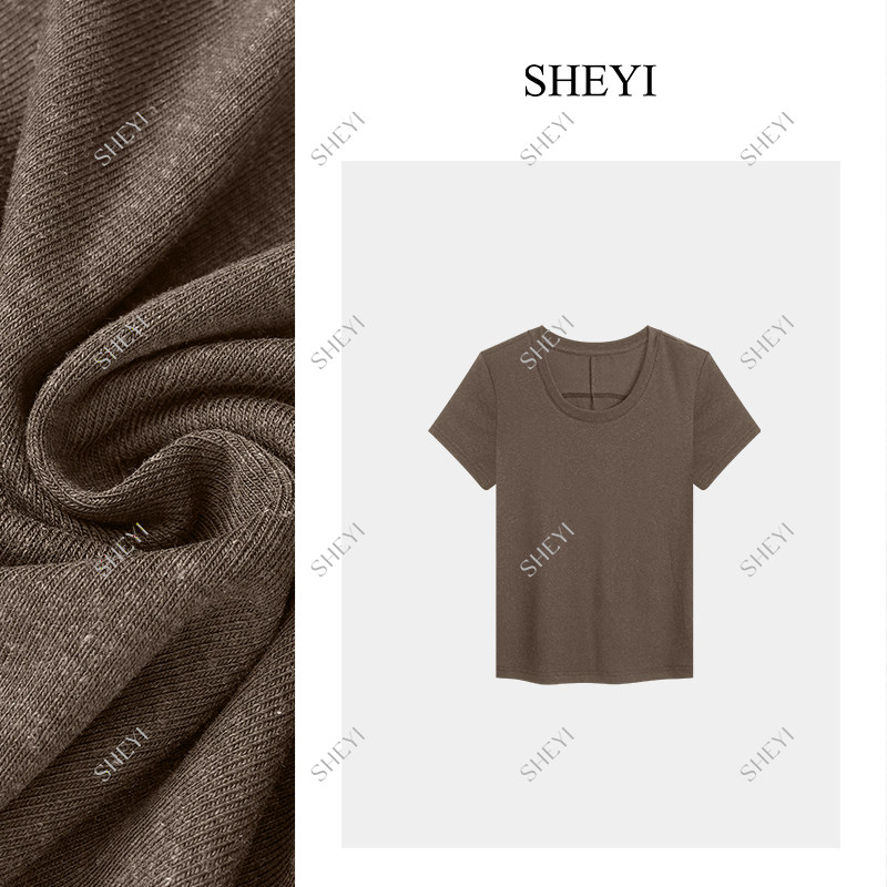 亚麻短袖 天丝 2026新款 T恤女春夏百搭显瘦休闲女上衣 U领裸感T