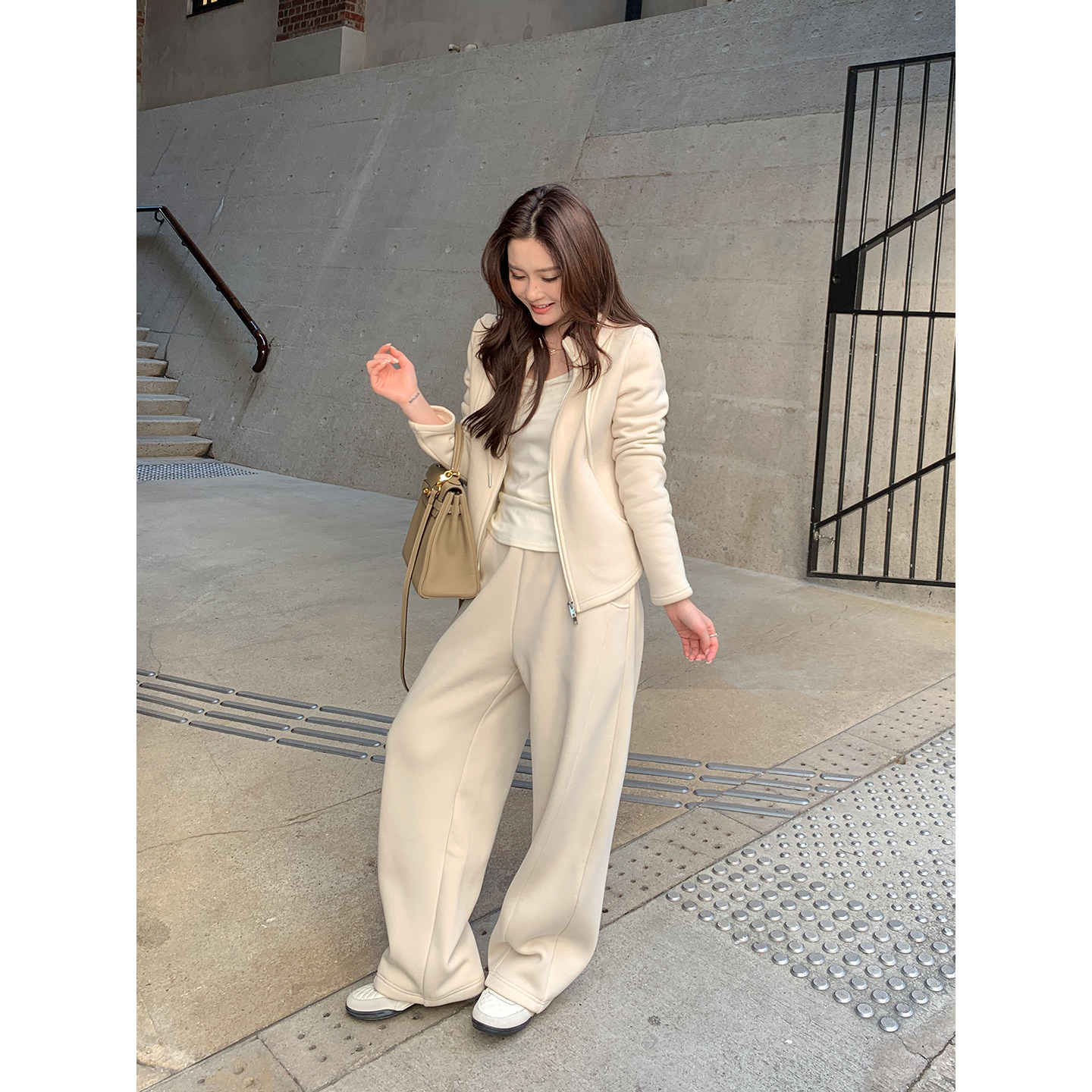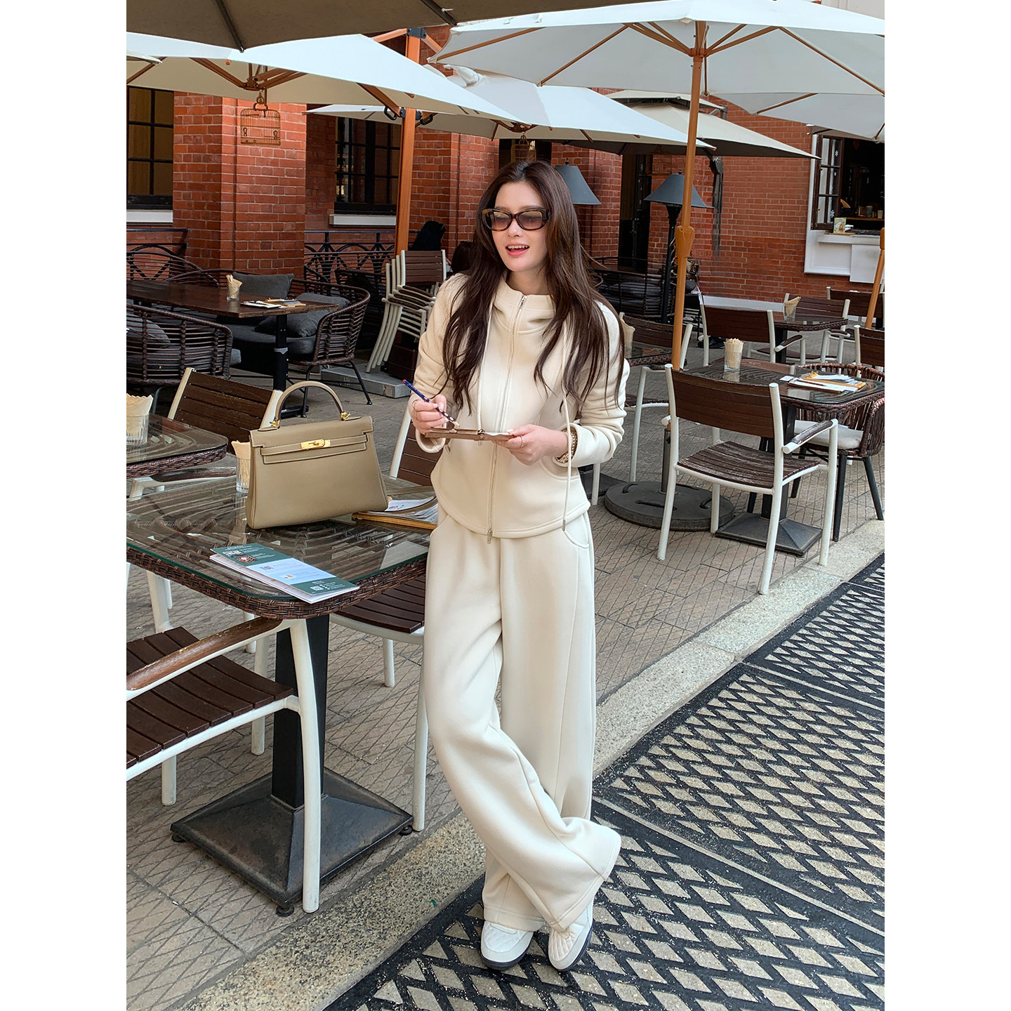 高级感连帽卫衣外套女通勤直筒休闲卫裤 暖绒套装 Lin Maven